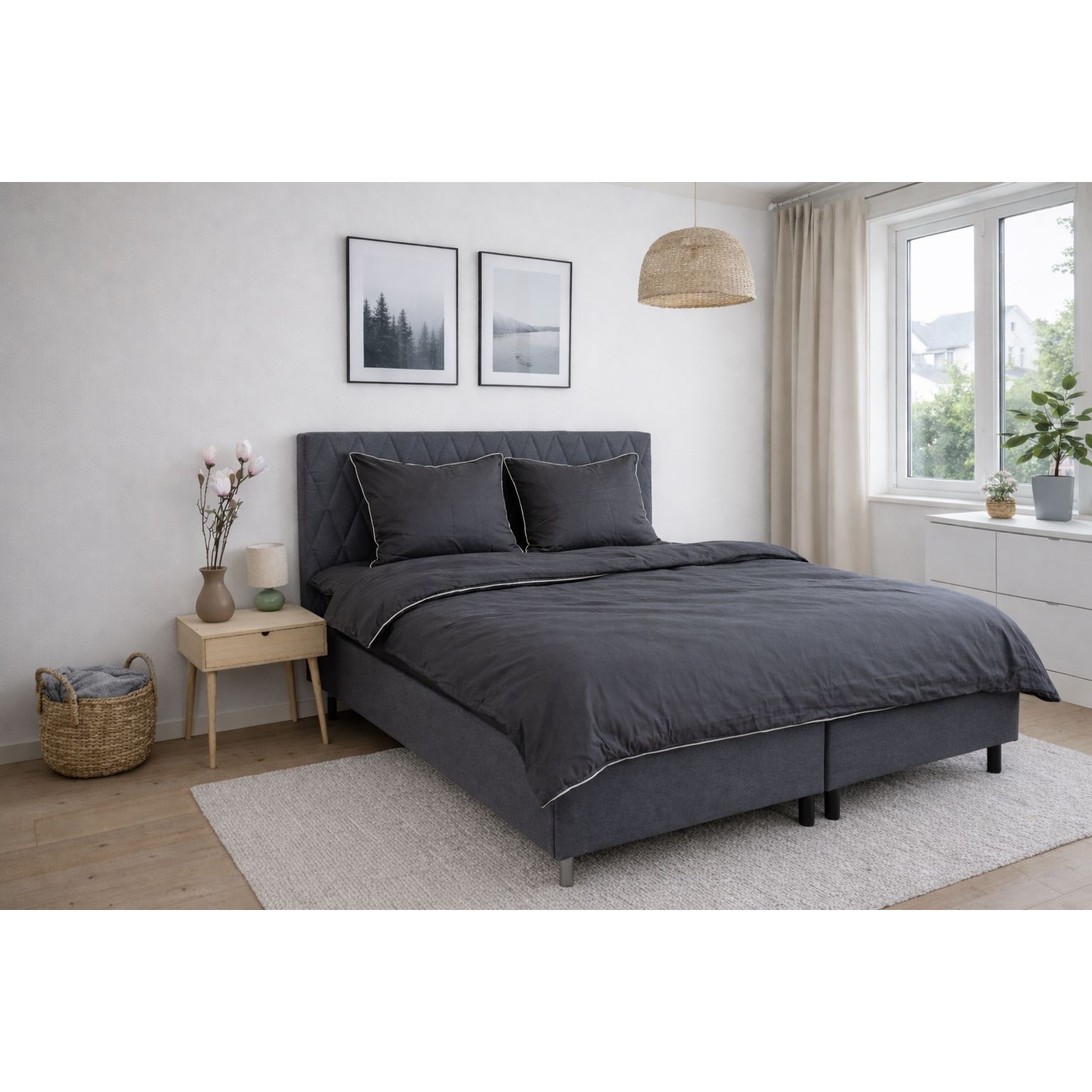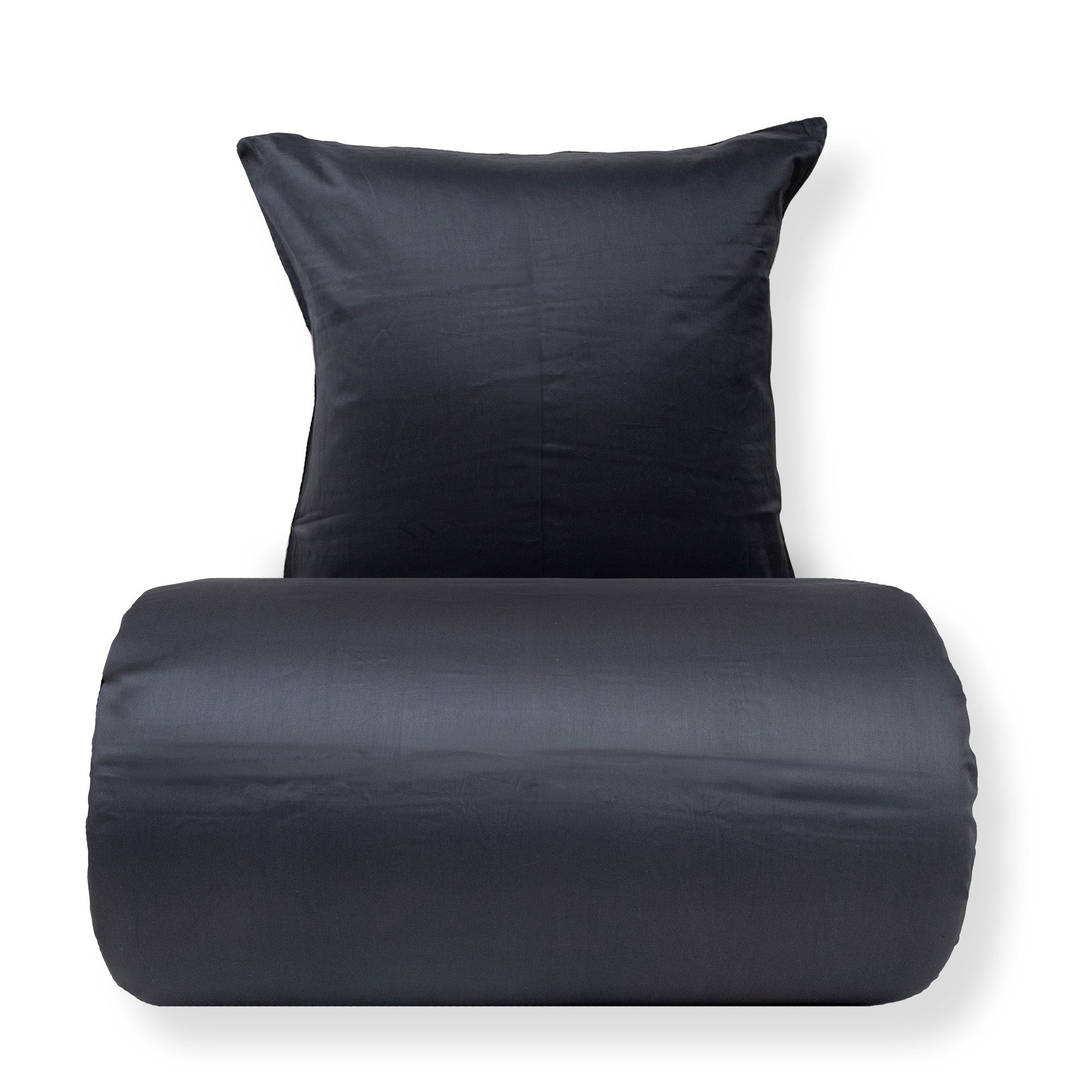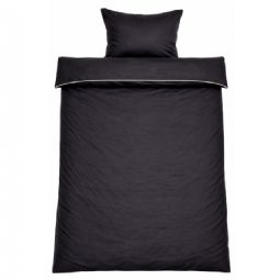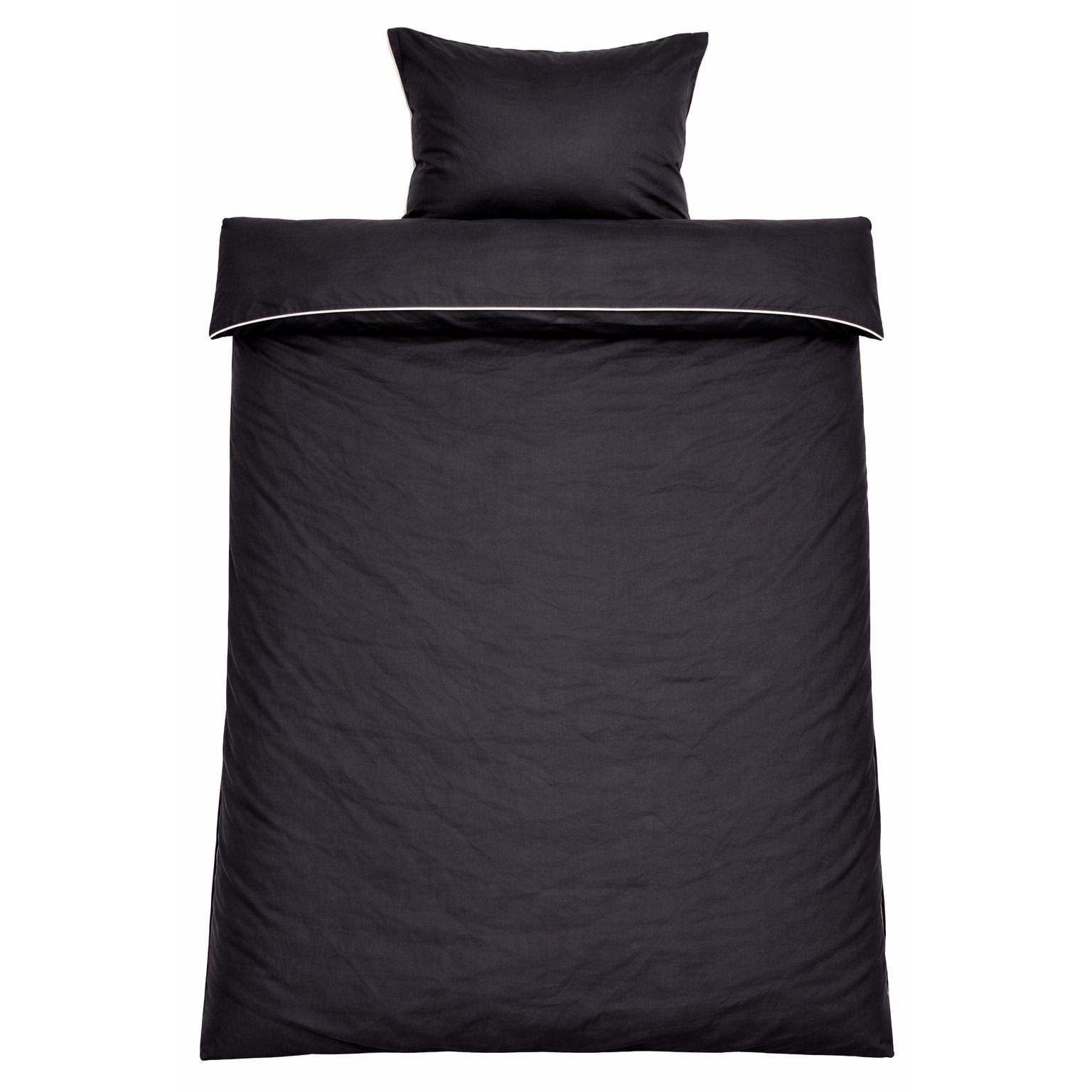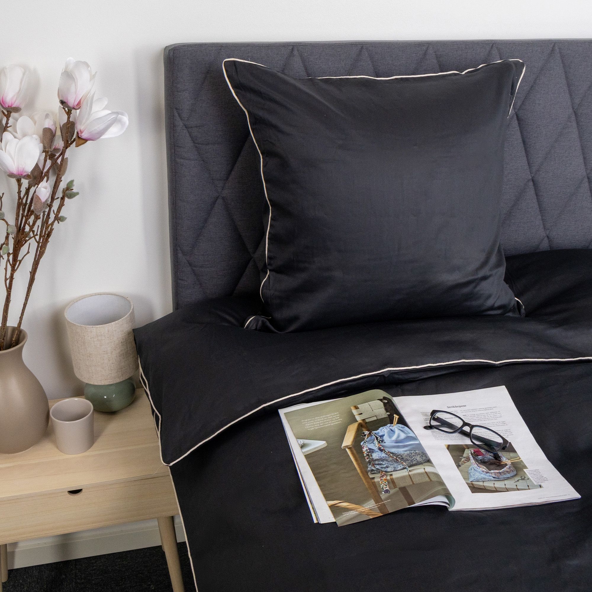 Dobbelt sengetøj 200x220 cm - 100% bomuldssatin - Sort med hvid pipingkant