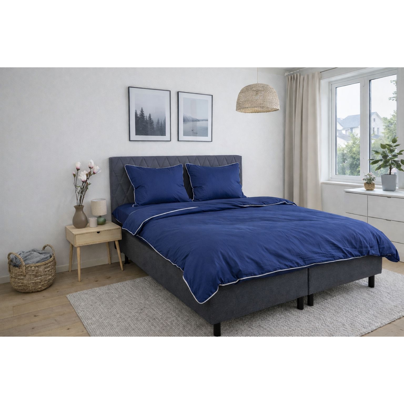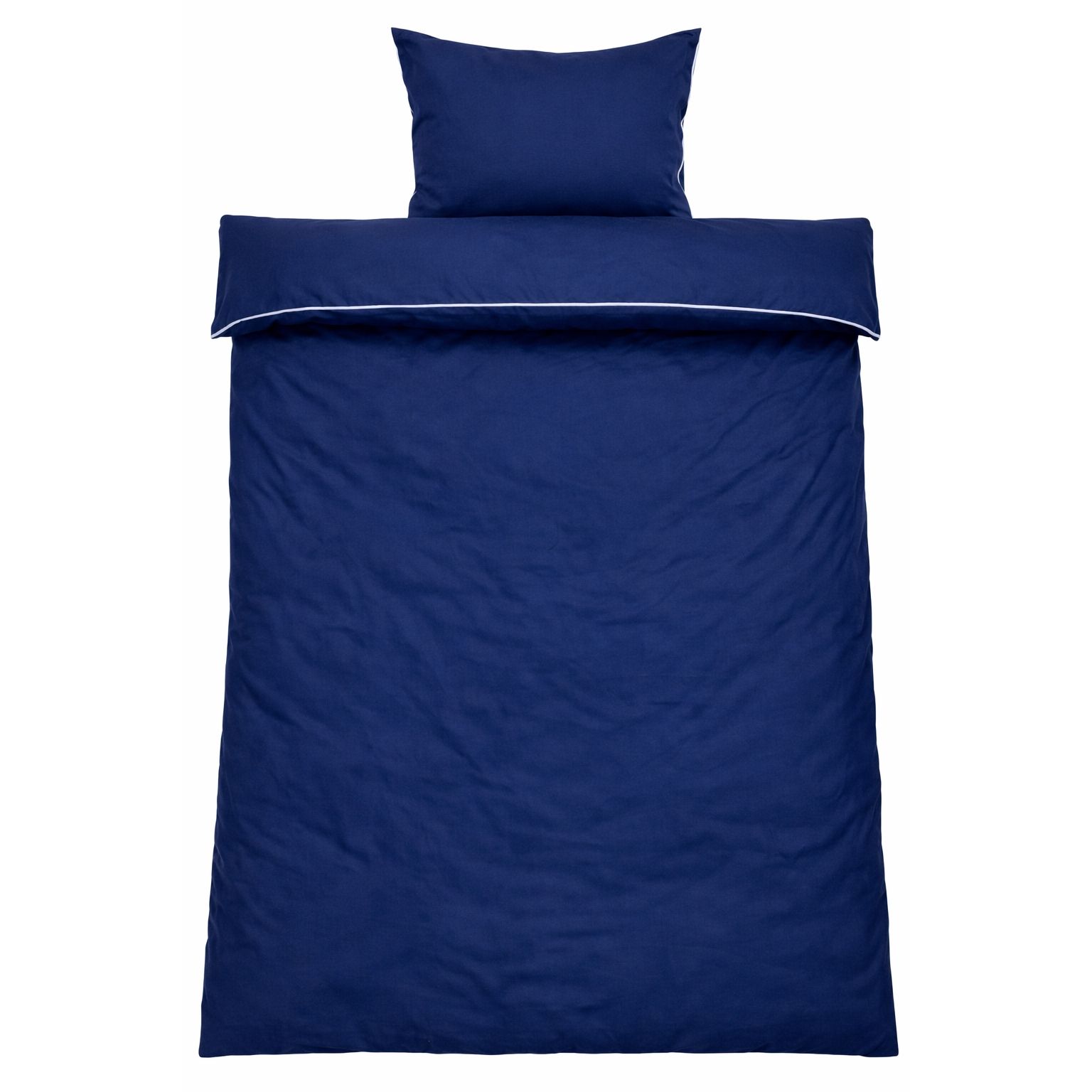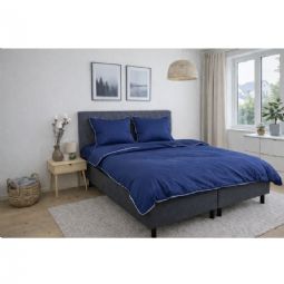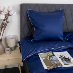 Skab et elegant og luksuriøst udtryk i soveværelset med dette eksklusive sengesæt til dobbeltdyner i 100% bomuldssatin med en dekorativ pipingkant fra By Borg. Det ensfarvede design i dyb blå kombineret med en hvid pipingkant tilfører et stilrent og sofistikeret look, der løfter helhedsindtrykket i soveværelset.