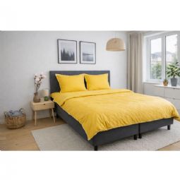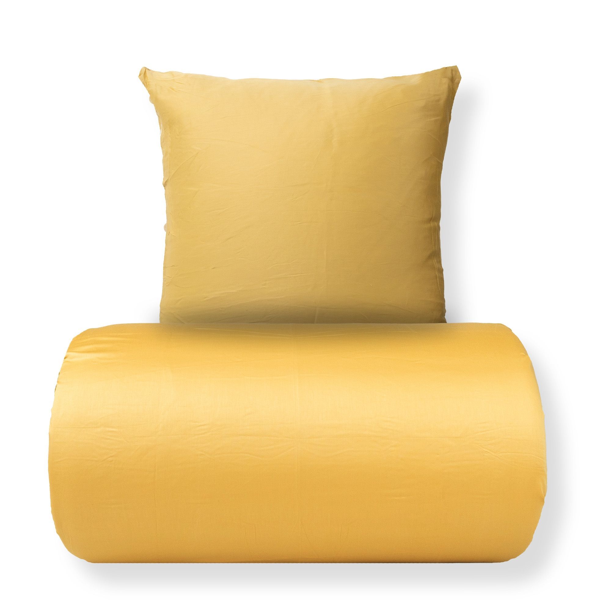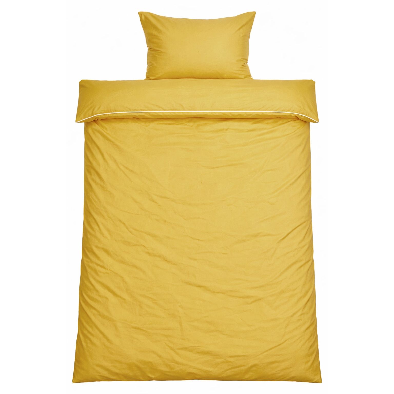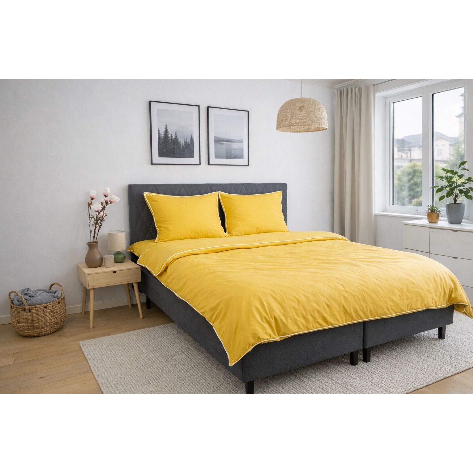 Dobbelt sengetøj 200x220 cm - 100% bomuldssatin - Gul med hvid pipingkant