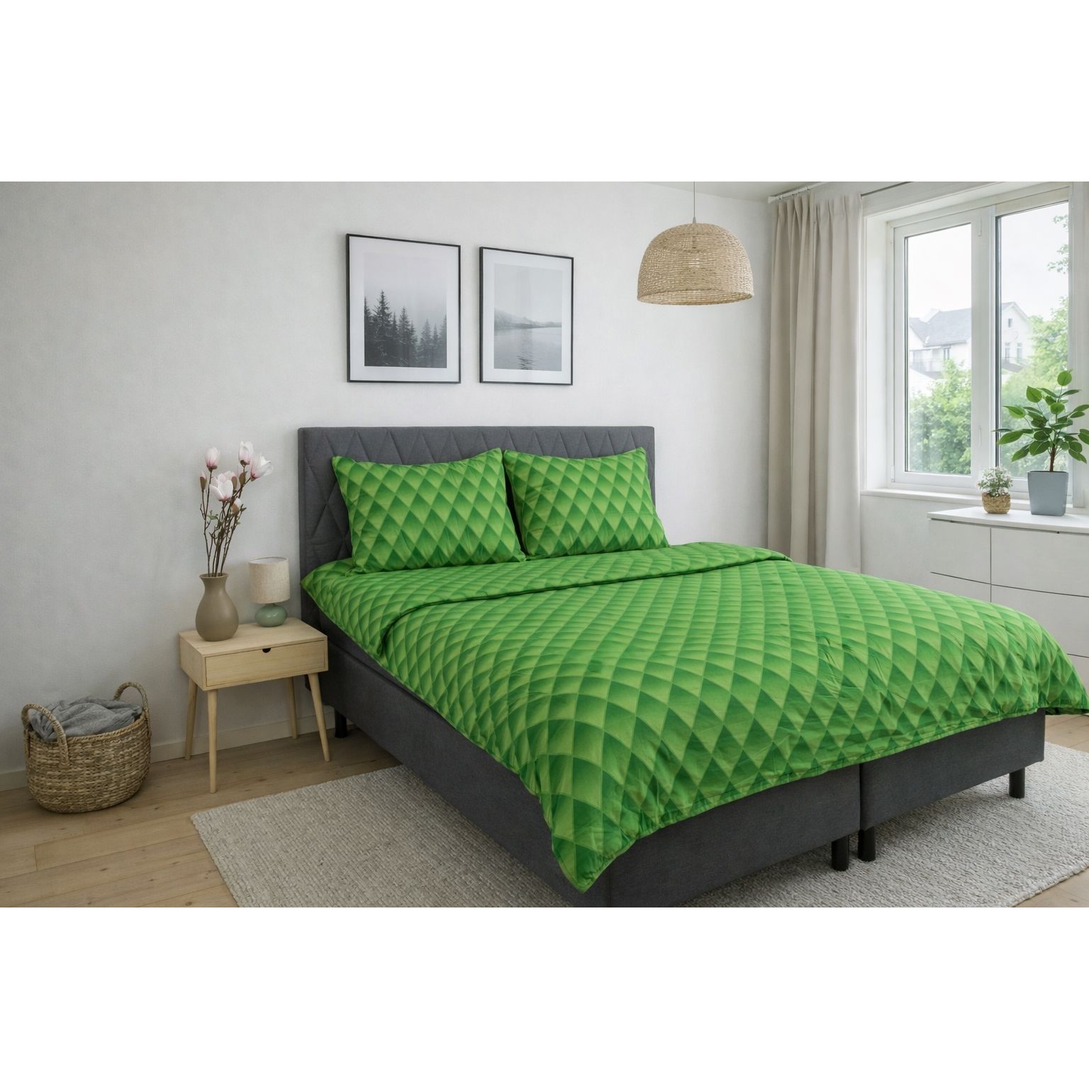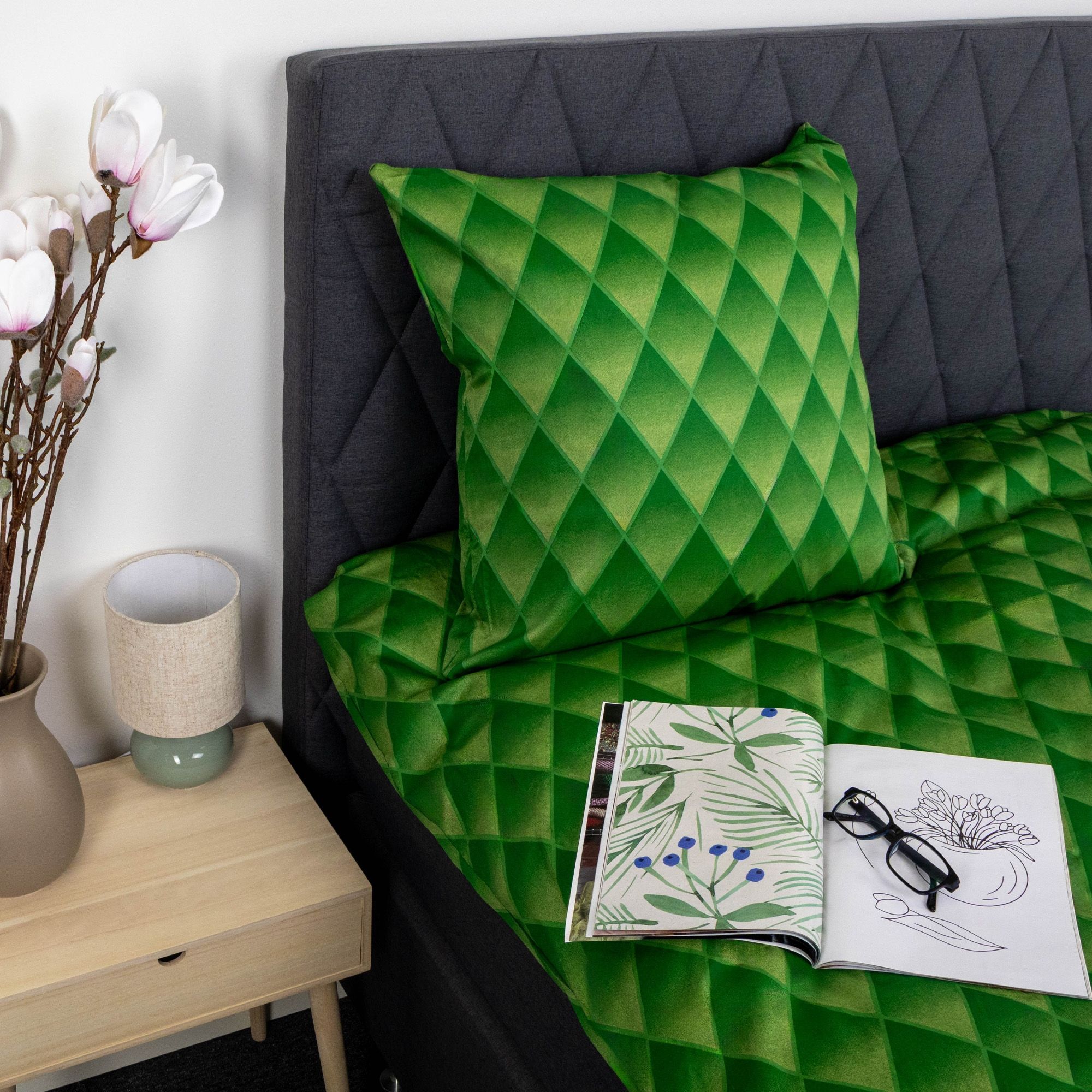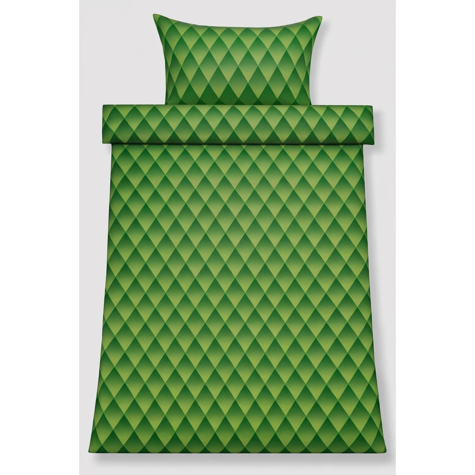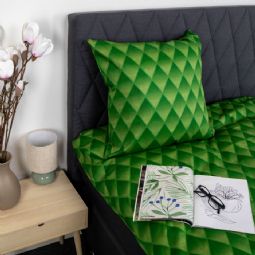 Dobbelt sengetøj 240x220 cm - 100% bomuldssatin - Grønt 3D harlekinmønster