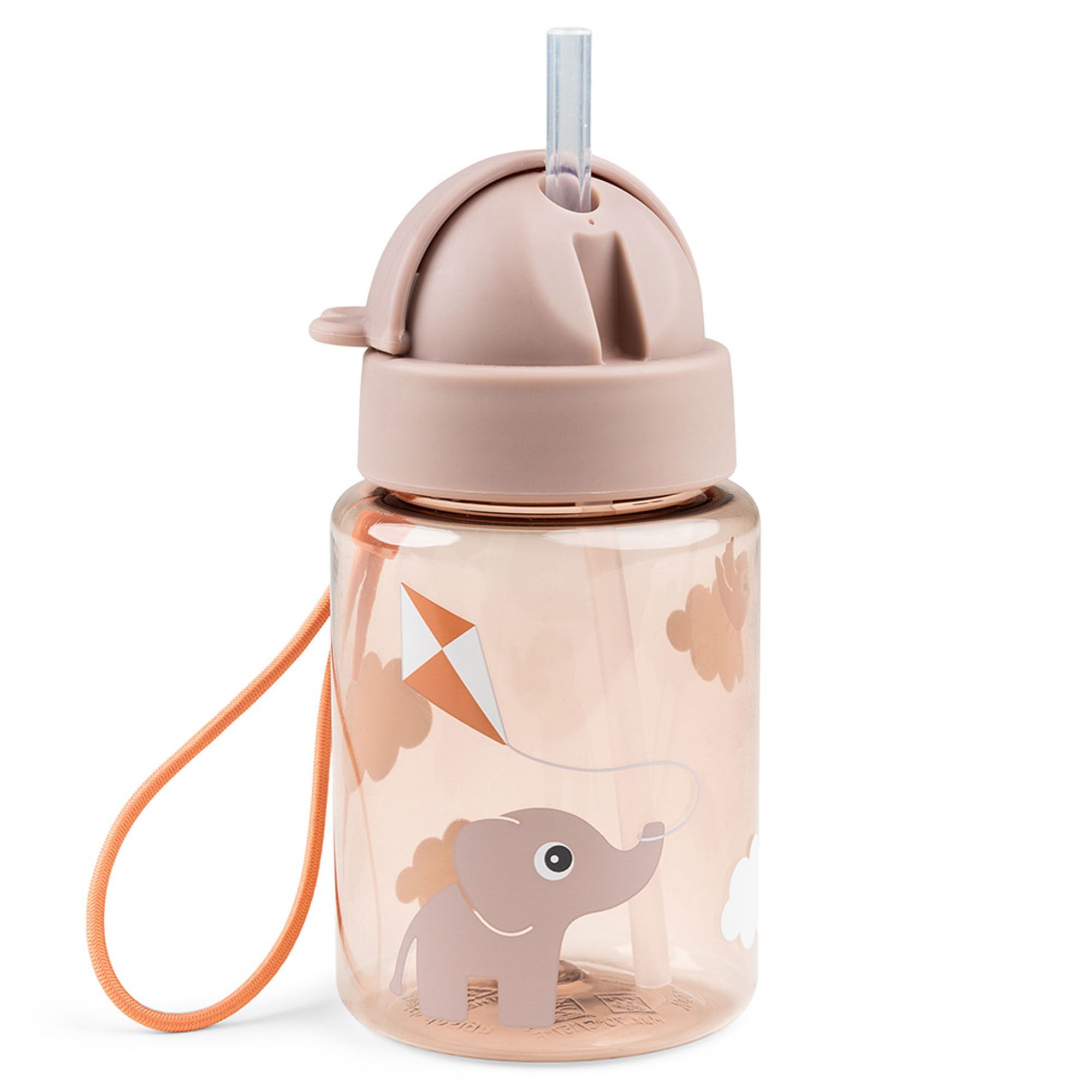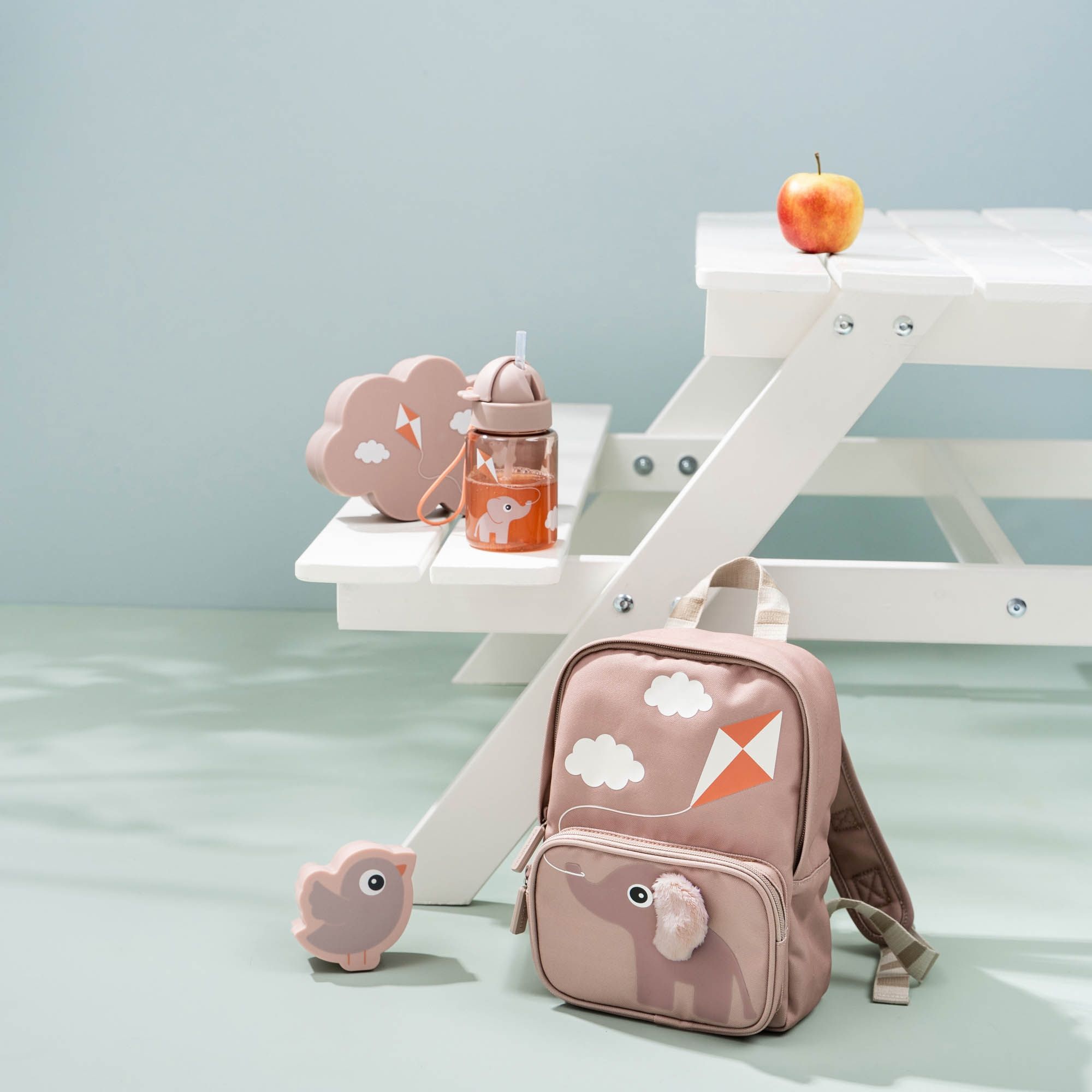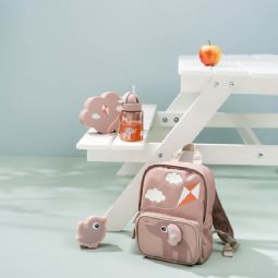 Drikkedunken er udstyret med et sammenklappeligt sugerør og et smart låg, der forhindrer spild. Det gør det nemt for børn selv at drikke, samtidig med at tasken holdes tør.