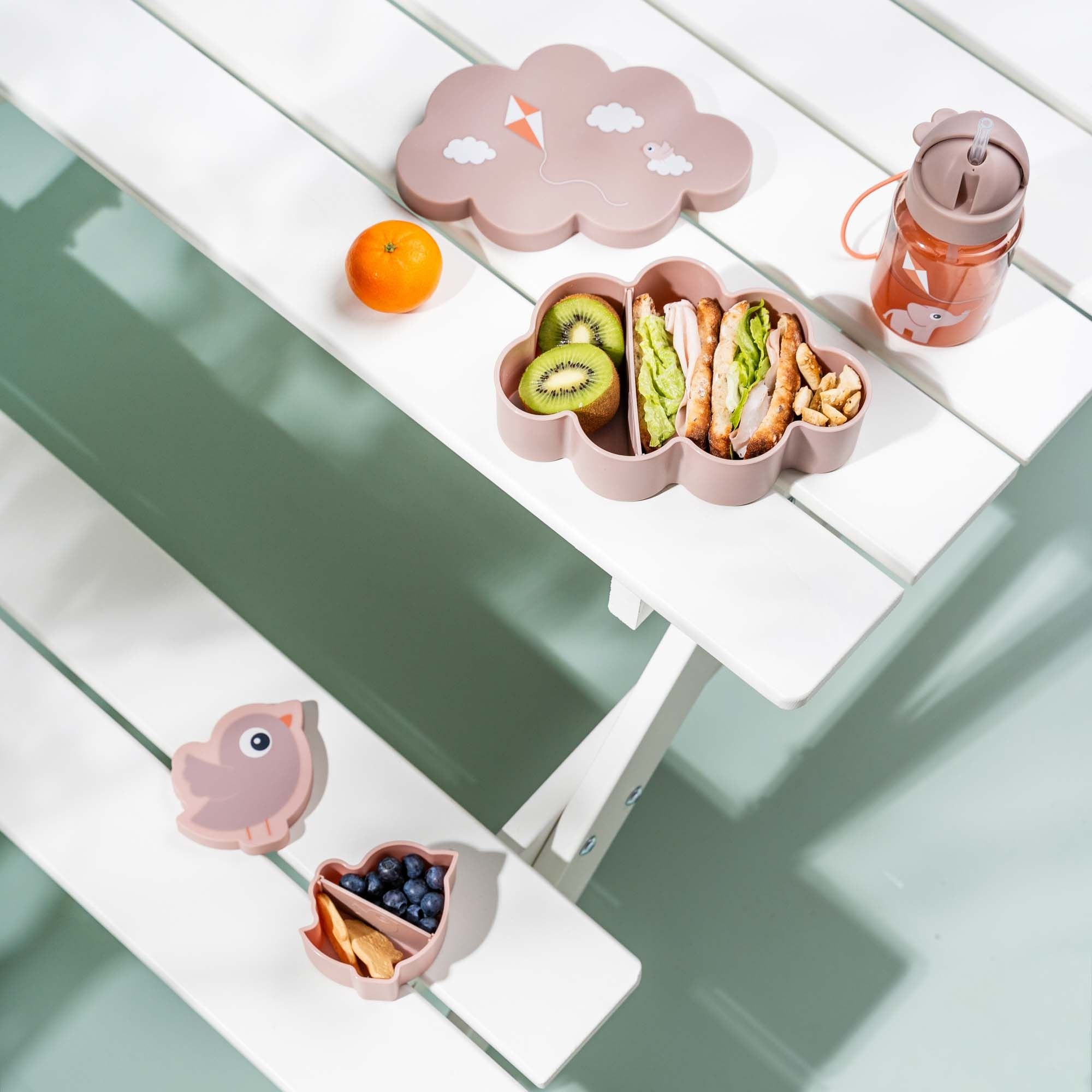 Det søde design, skaber et legende og hyggeligt udtryk, som gør måltiderne endnu sjovere. Sættet er ideelt til børnehave, skole, picnic og udflugter.