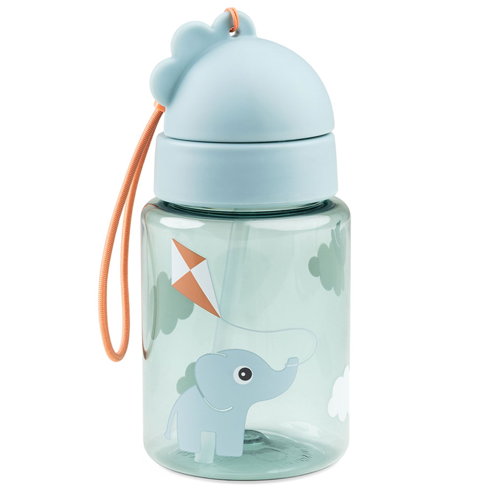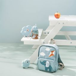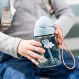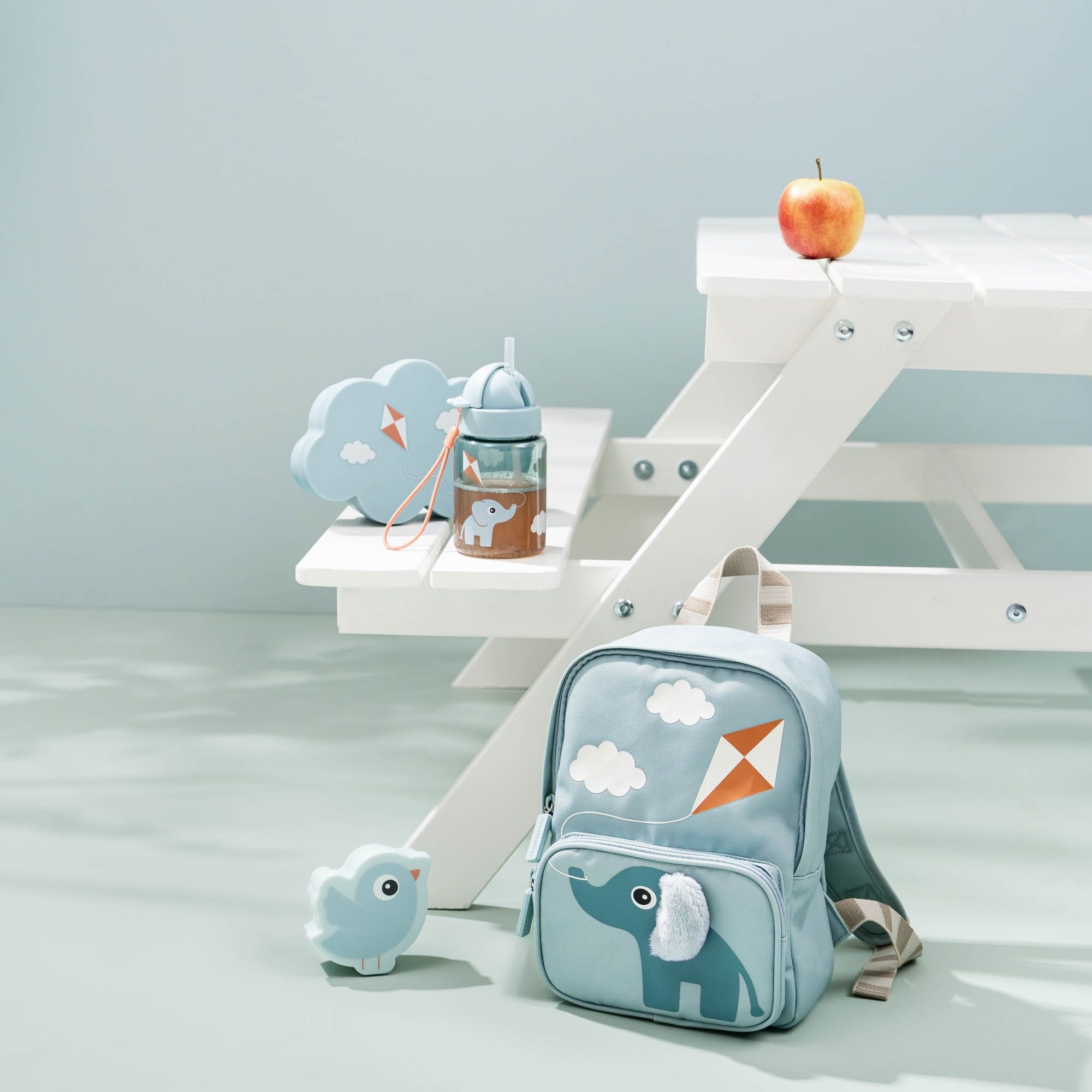 Drikkedunken er udstyret med et sammenklappeligt sugerør og et smart låg, der forhindrer spild. Det gør det nemt for børn selv at drikke, samtidig med at tasken holdes tør.