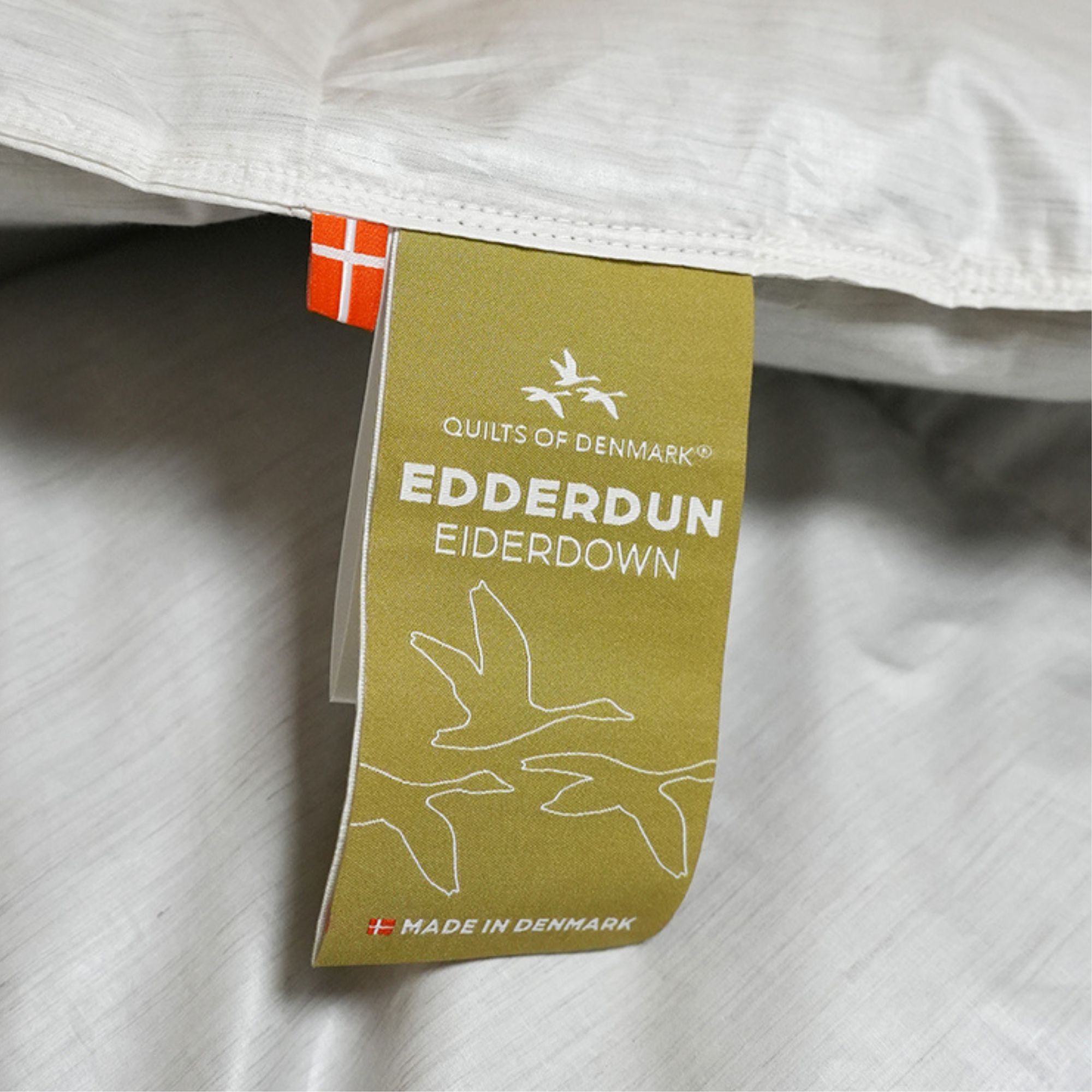 Denne luksus dyne består af 100% håndindsamlet islandske edderdun, den fineste, bedste og mest eksklusive duntype. Dunene bliver samlet direkte fra fuglens reder, så snart den efterlades af ungerne. De kostbare små dun har en unik isoleringsevne som når langt over andre almindelige dun, og så er de så lette - at de føles som varm luft. Edderdun er den dun type der har den højeste bæreevne/CUIN på 16/1100 - jo højere bæreevne, desto finere dun er der brugt. Edderdun er de fineste der findes, på verdensplan. Dette gør også de eksklusive dun til det letteste og varmeste materiale i hele verden. Edderdun griber, modsat andre duntyper, fast i hinanden så de ikke skilles ad, hvilket skaber deres utrolige isoleringsevne, samtidig med at de giver den letteste, mest luftige og fyldige dyne.