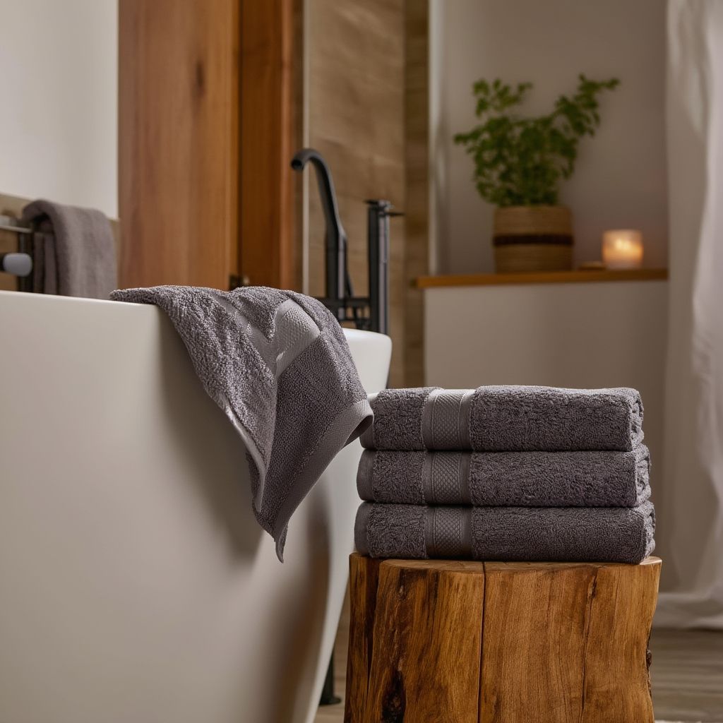 Egyptisk bomulds håndklæde - 100 % egyptisk bomuld - 50x100 cm - Orkidé - Antracit grå