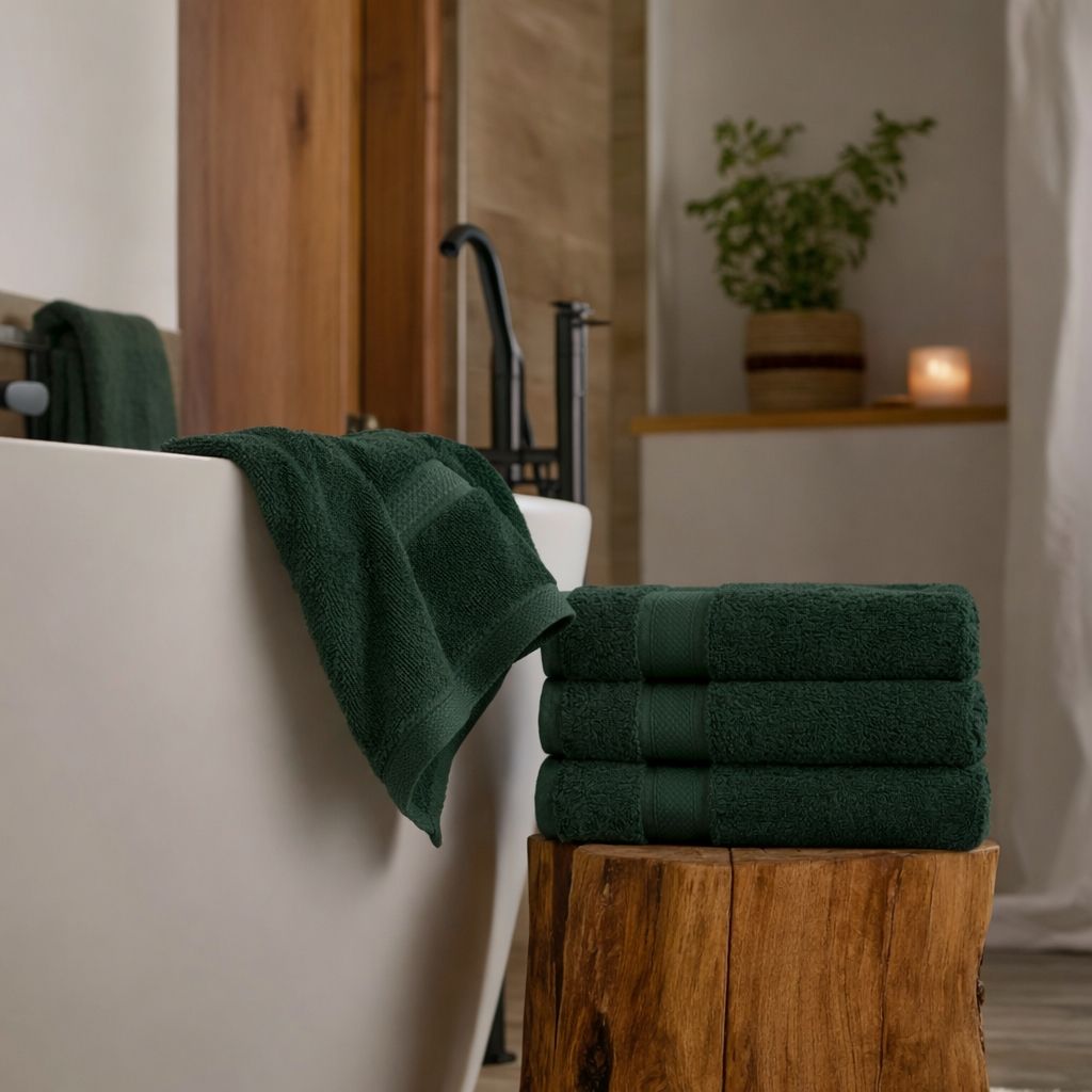 Egyptisk bomulds håndklæde - 100% egyptisk bomuld - 50x100 cm - Orkidé - Mørkegrøn