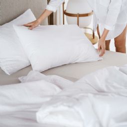 Puden kan vaskes ved 60 grader i vaskemaskine, men for længere levetid, mindre miljøbelastning og lavere energiforbrug anbefaler vi, at du vasker puden ved 40 grader. Vask gerne puden to til fire gange om året. Brug kun 2/3 af normal dosering af et enzymfrit vaskemiddel. Puder skal tørretumbles ved højeste temperatur og rystes op af og til under tørringen. På grund af det tætvævede betræk kan denne pude kræve flere omgange i tørretumbleren for at blive helt tør.