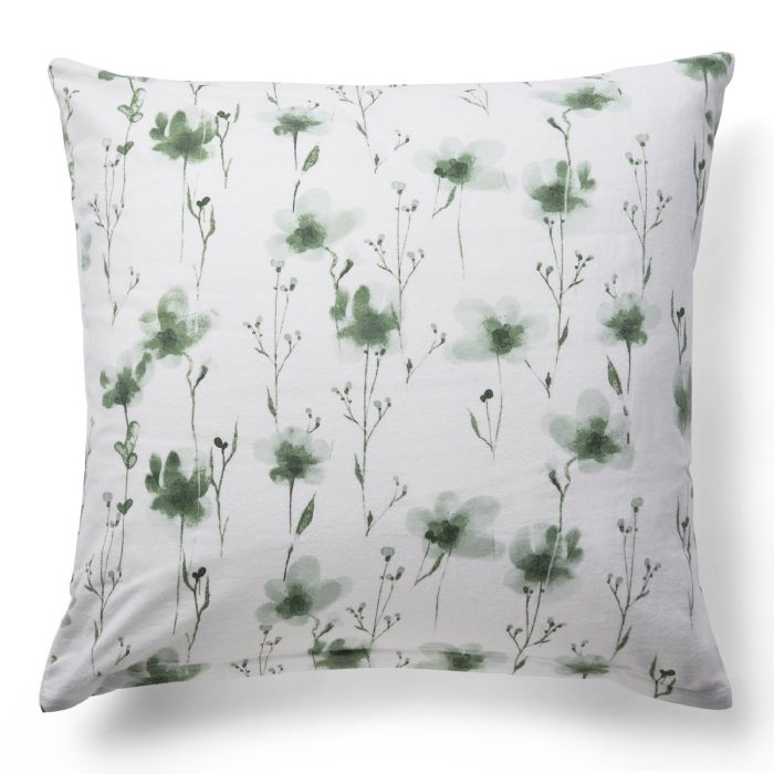 Flonel pudebetræk 60x63 cm - Blødt blomstret pudebetræk - Flower Green - 100% Bomuldsflonel - By Night hovedpudebetræk
