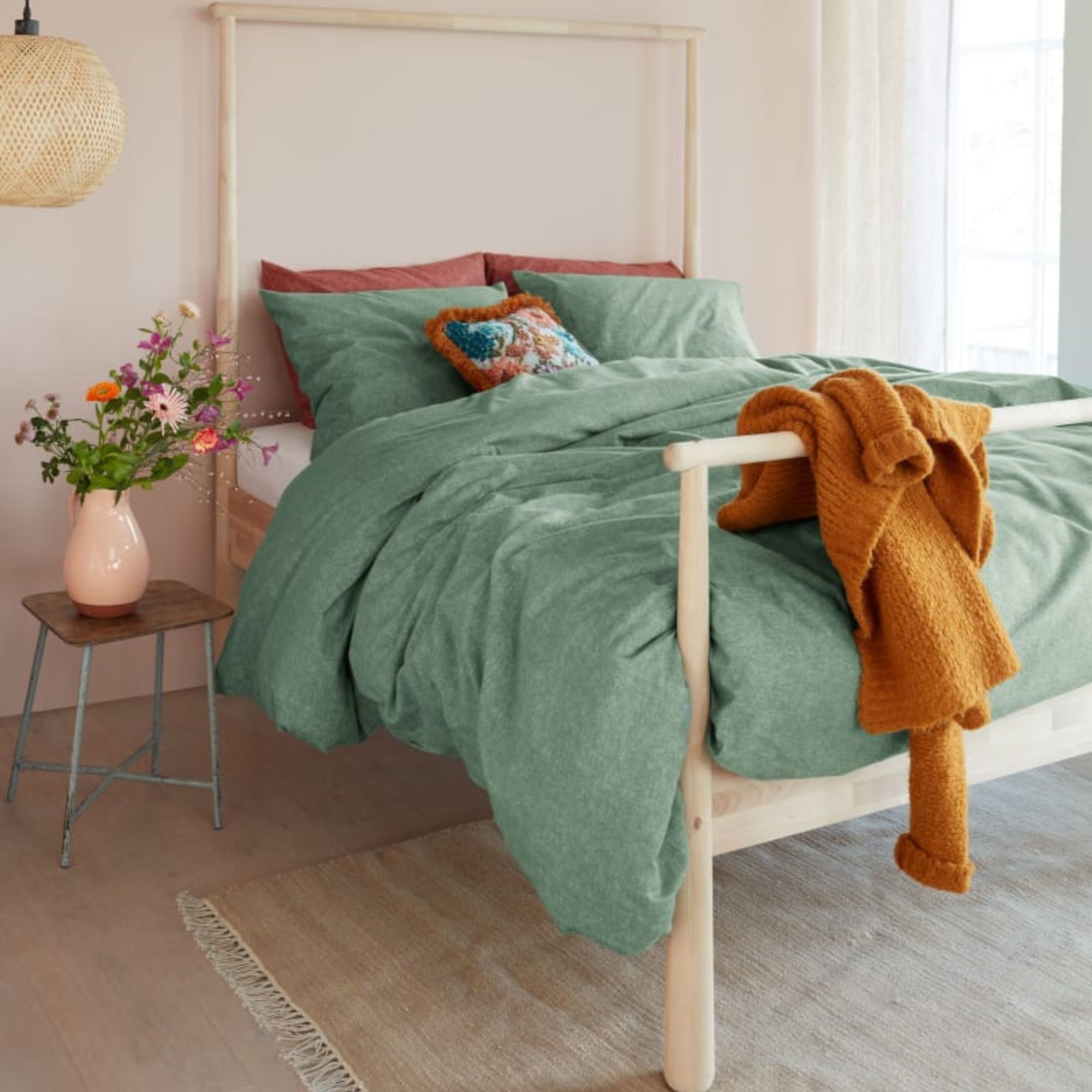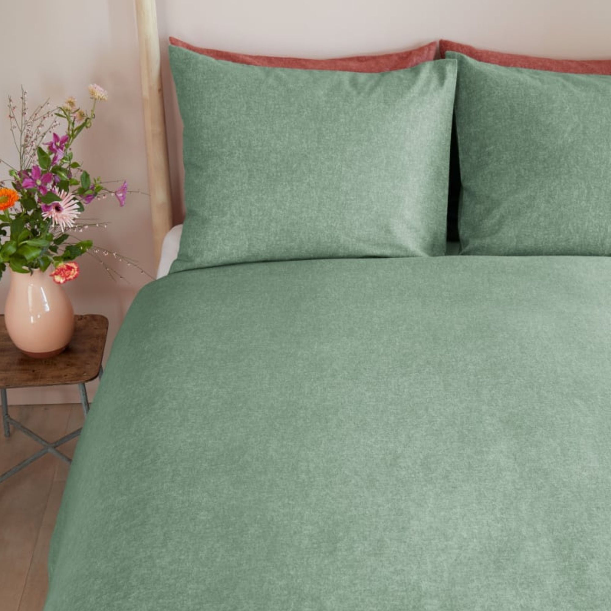 Flonel sengetøj 140x200 cm - Grågrønt ensfarvet sengesæt - 100% bomulds flonel - Frost Beddinghouse sengelinned