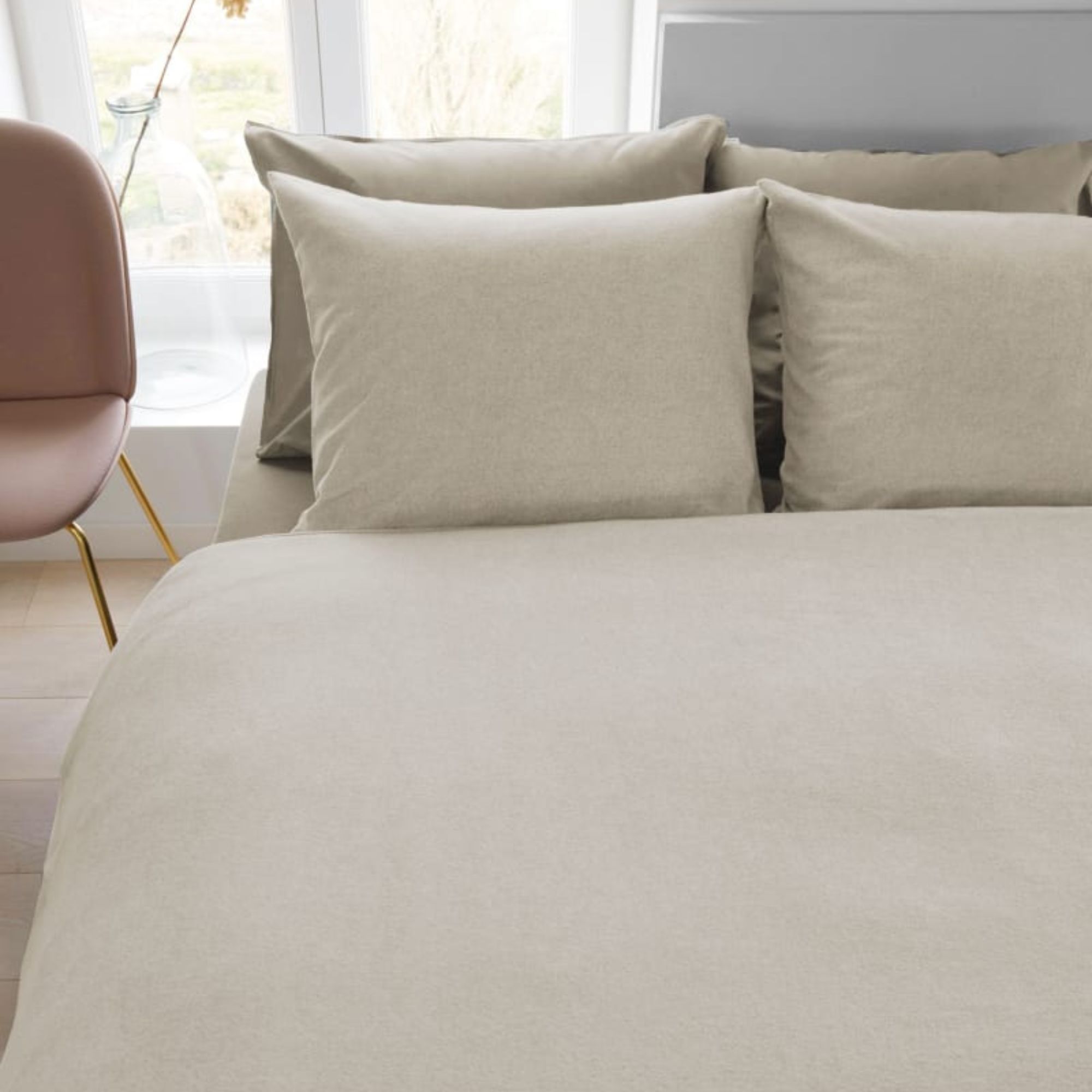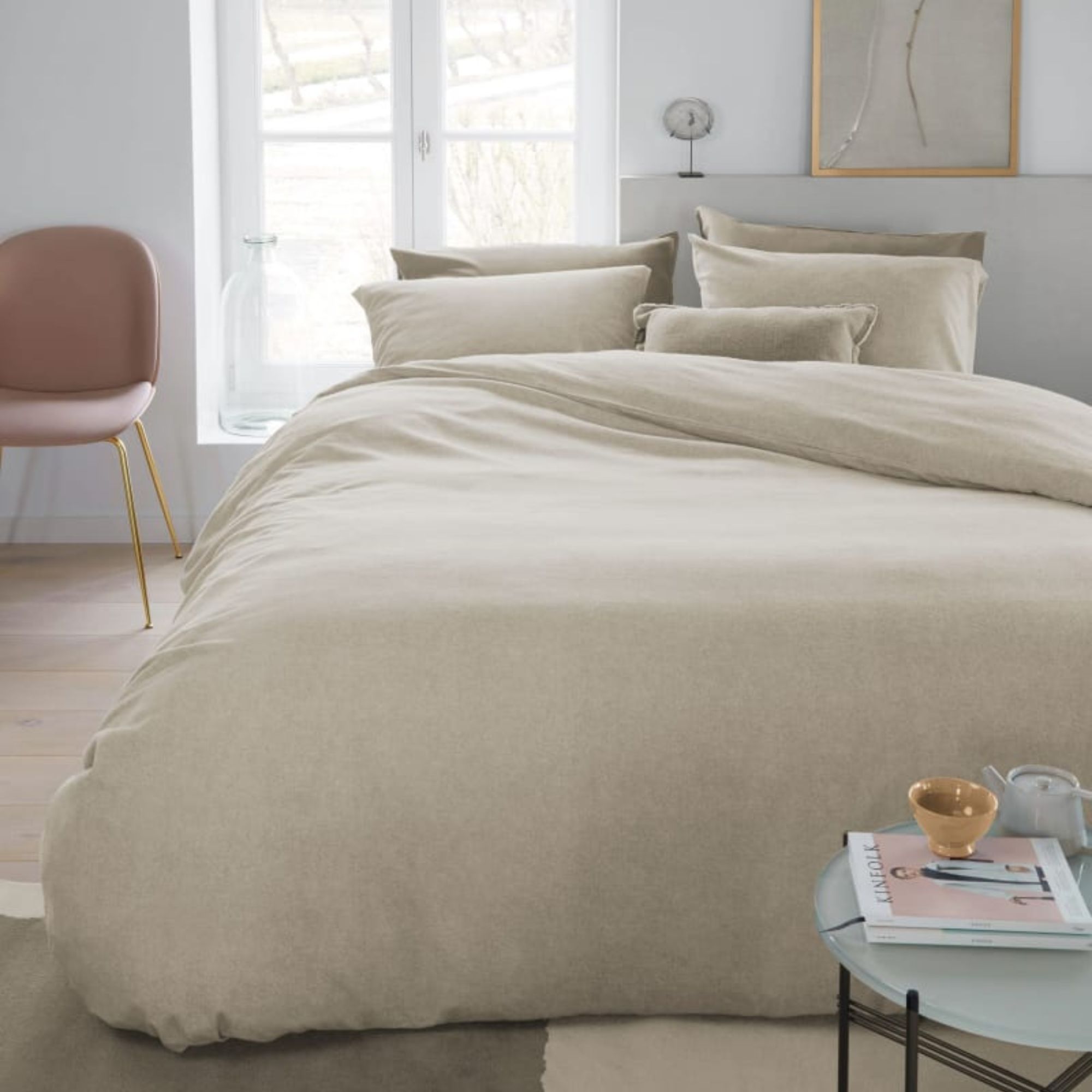Flonel sengetøj 140x200 cm - Sandfarvet ensfarvet sengesæt - 100% bomulds flonel - Frost Beddinghouse sengelinned