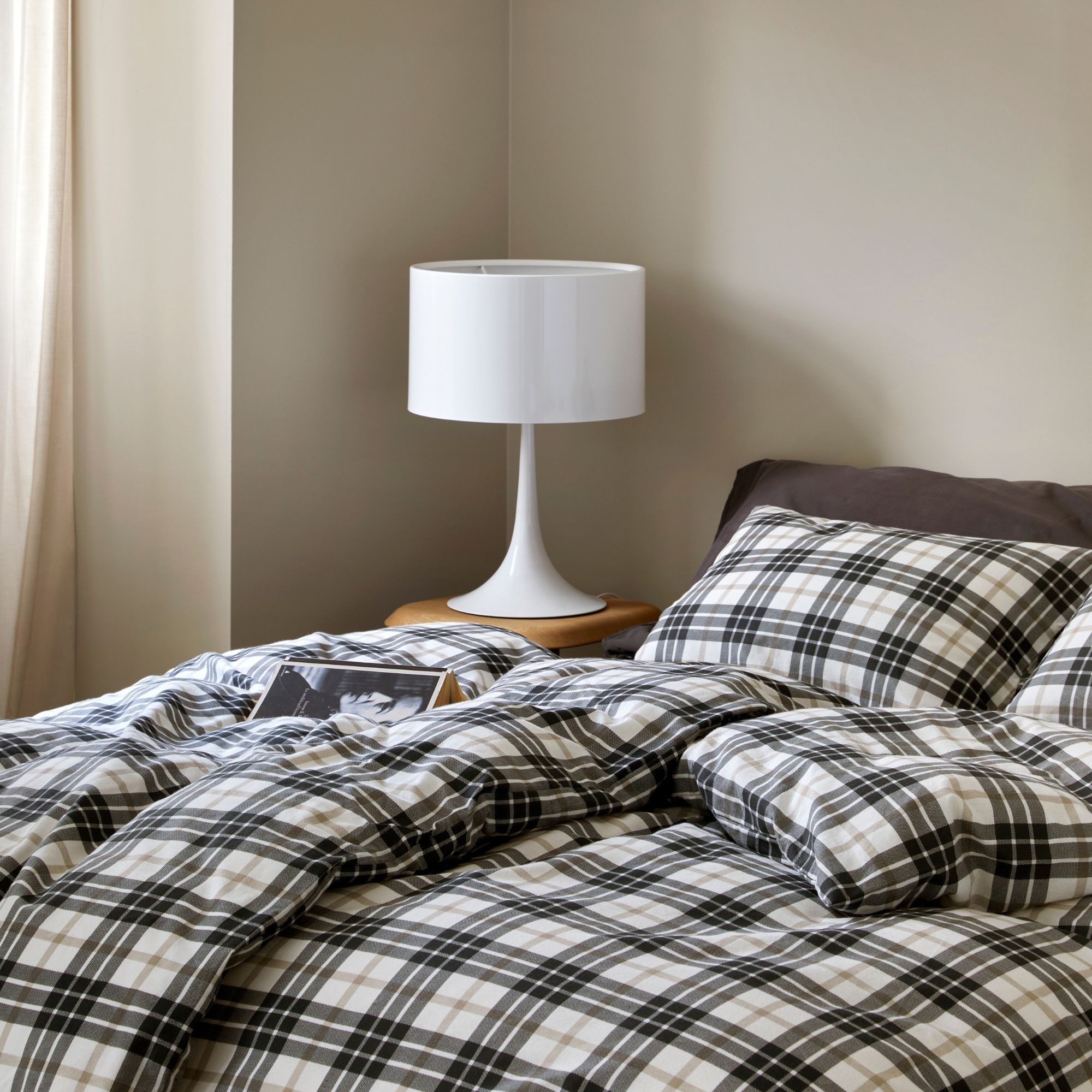 Flonel sengetøj 140x220 cm - Sort ternet sengesæt - 100% bomulds flonel - Lukas Høie of Scandinavia sengelinned