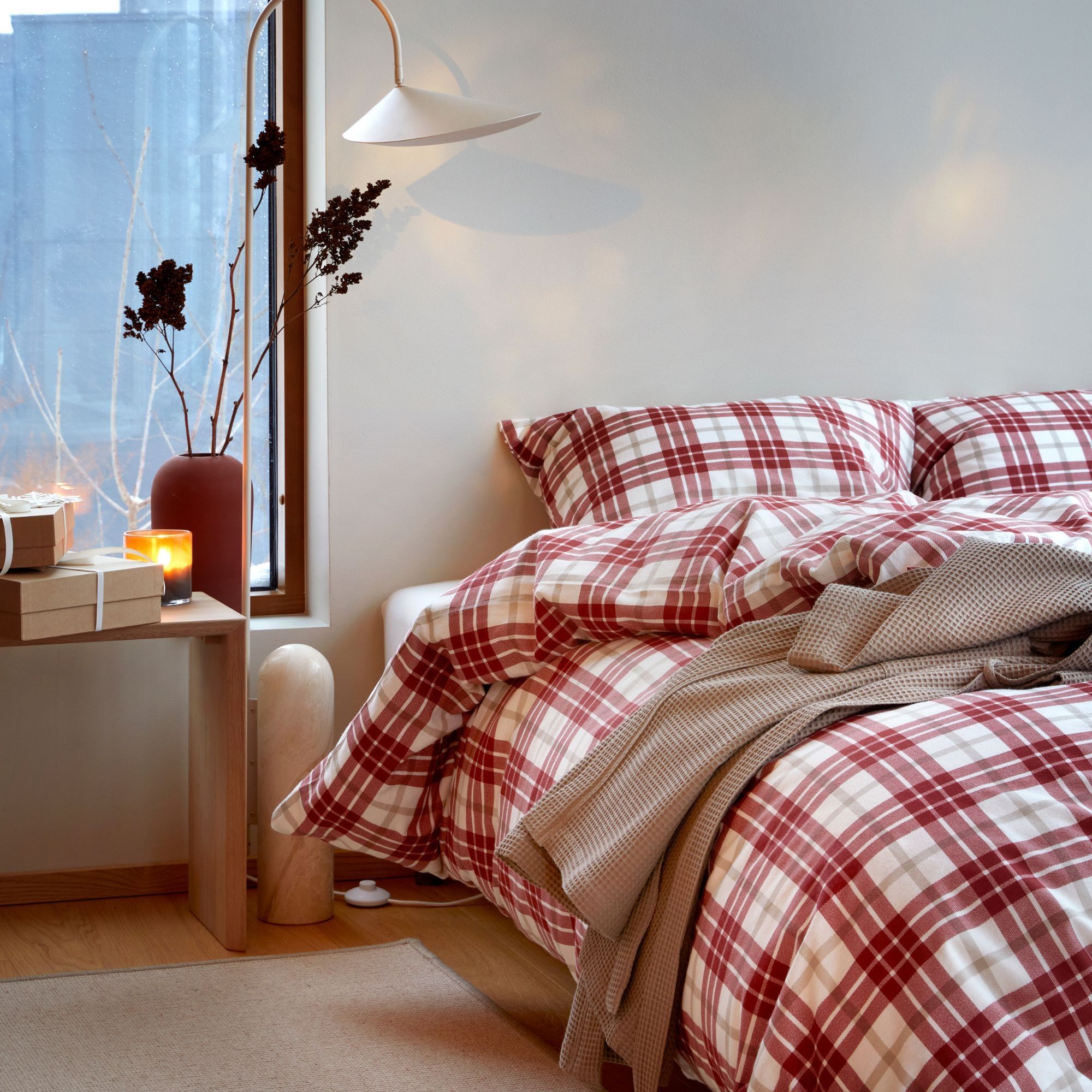 Flonel sengetøj 140x220 cm - Rødt ternet sengesæt - 100% bomulds flonel - Lukas Høie of Scandinavia sengelinned