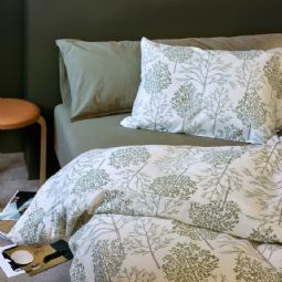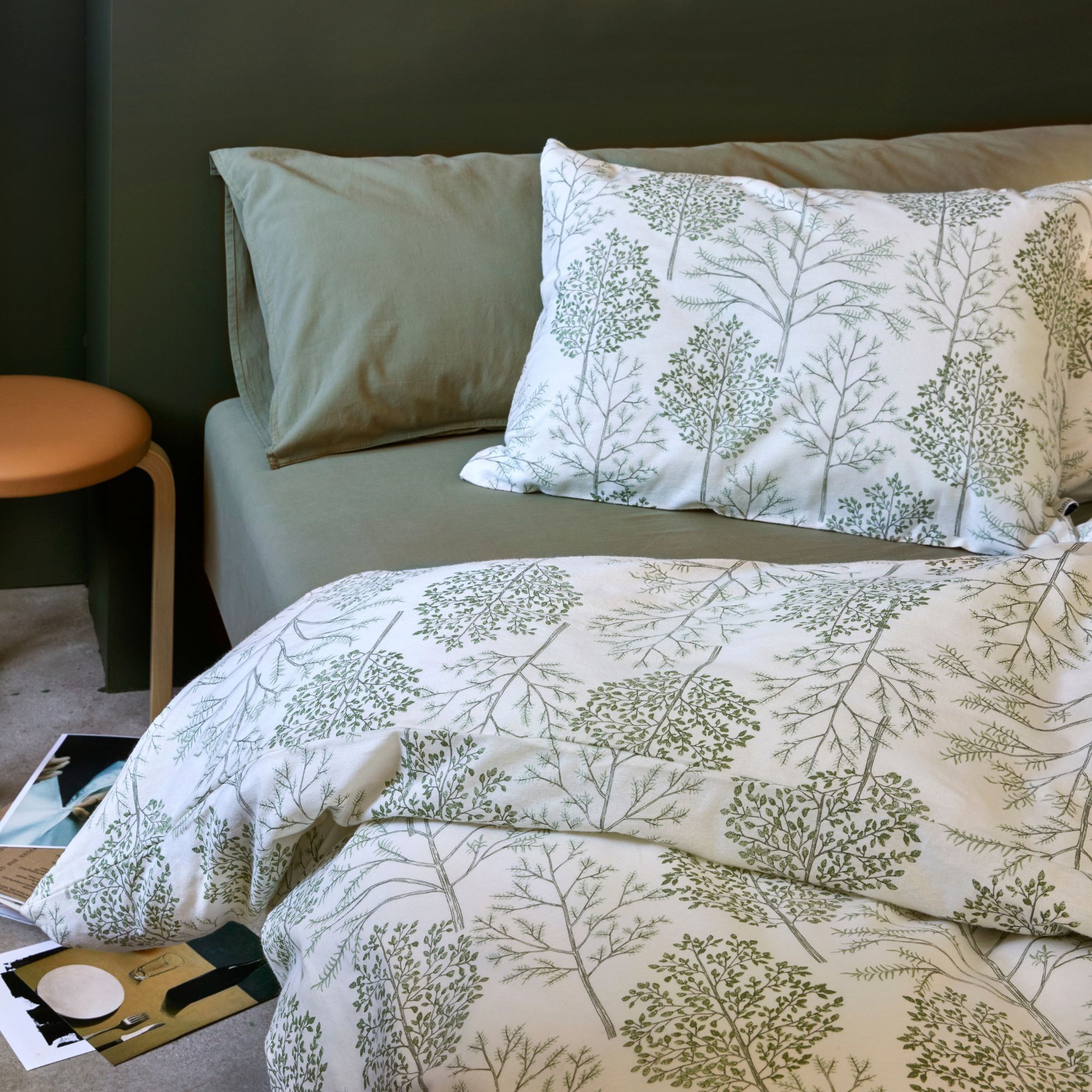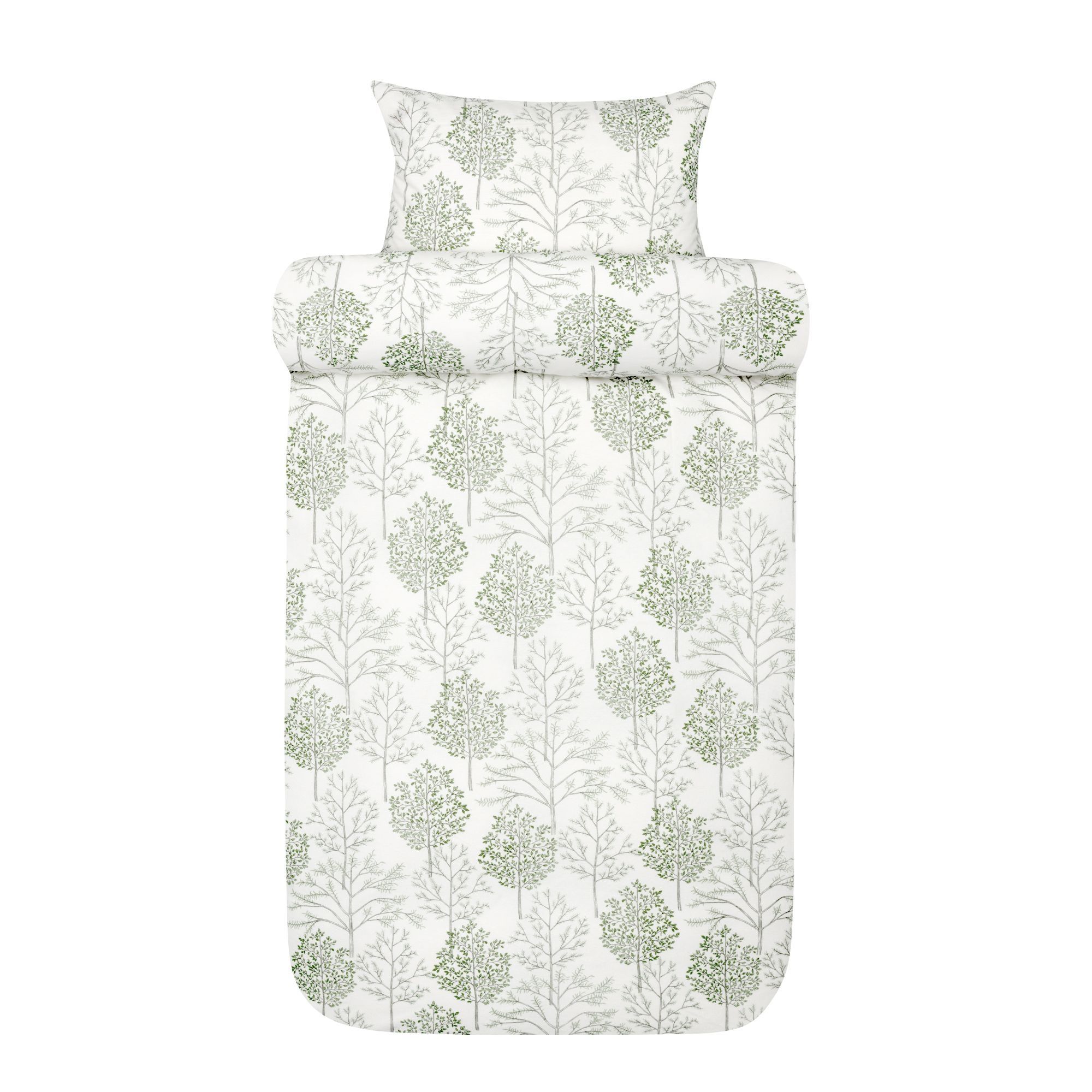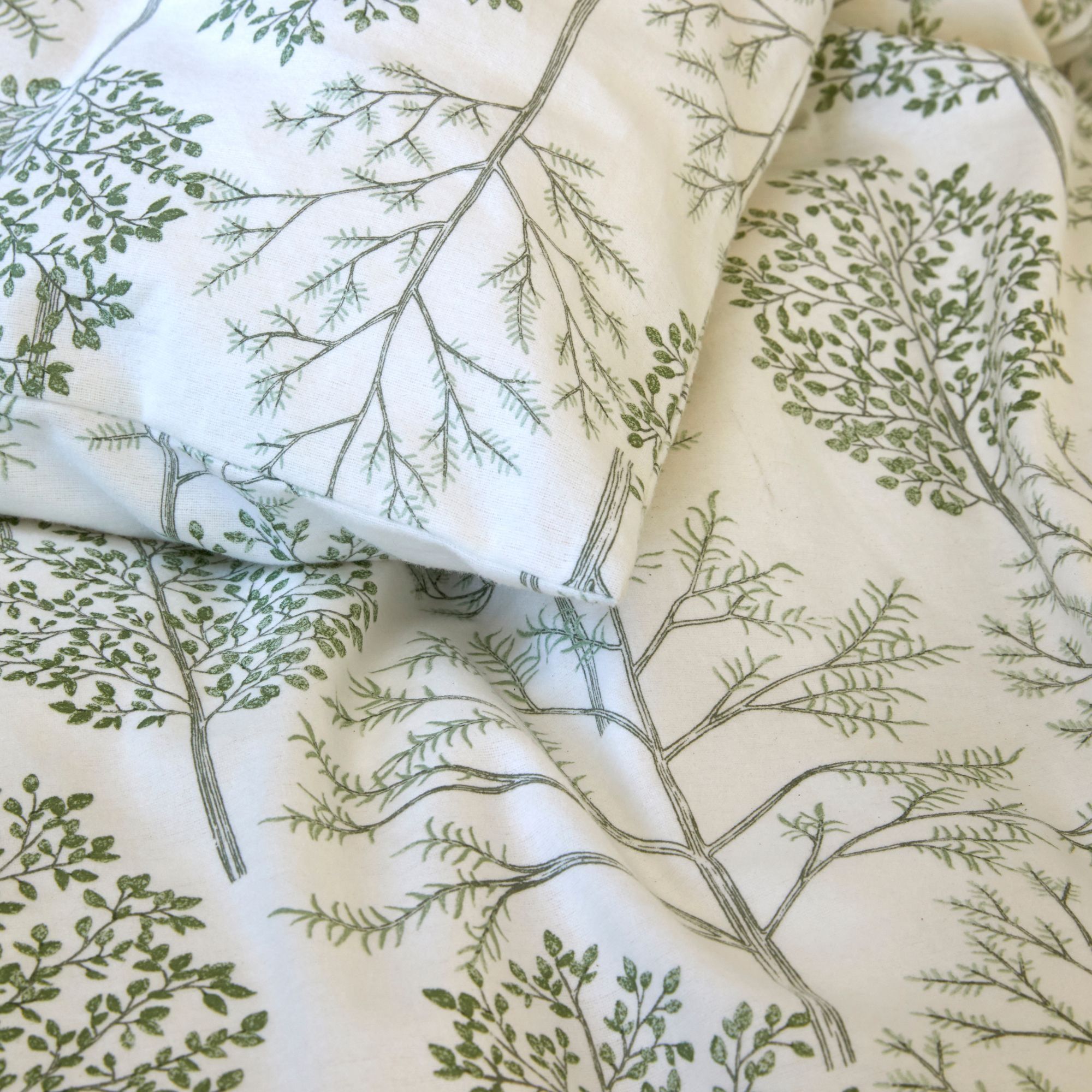 Flonel sengetøj 140x220 cm - Hvidt sengesæt med grønne træer - 100% bomulds flonel - Thea Høie of Scandinavia sengelinned
