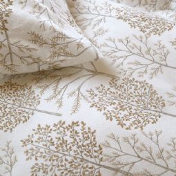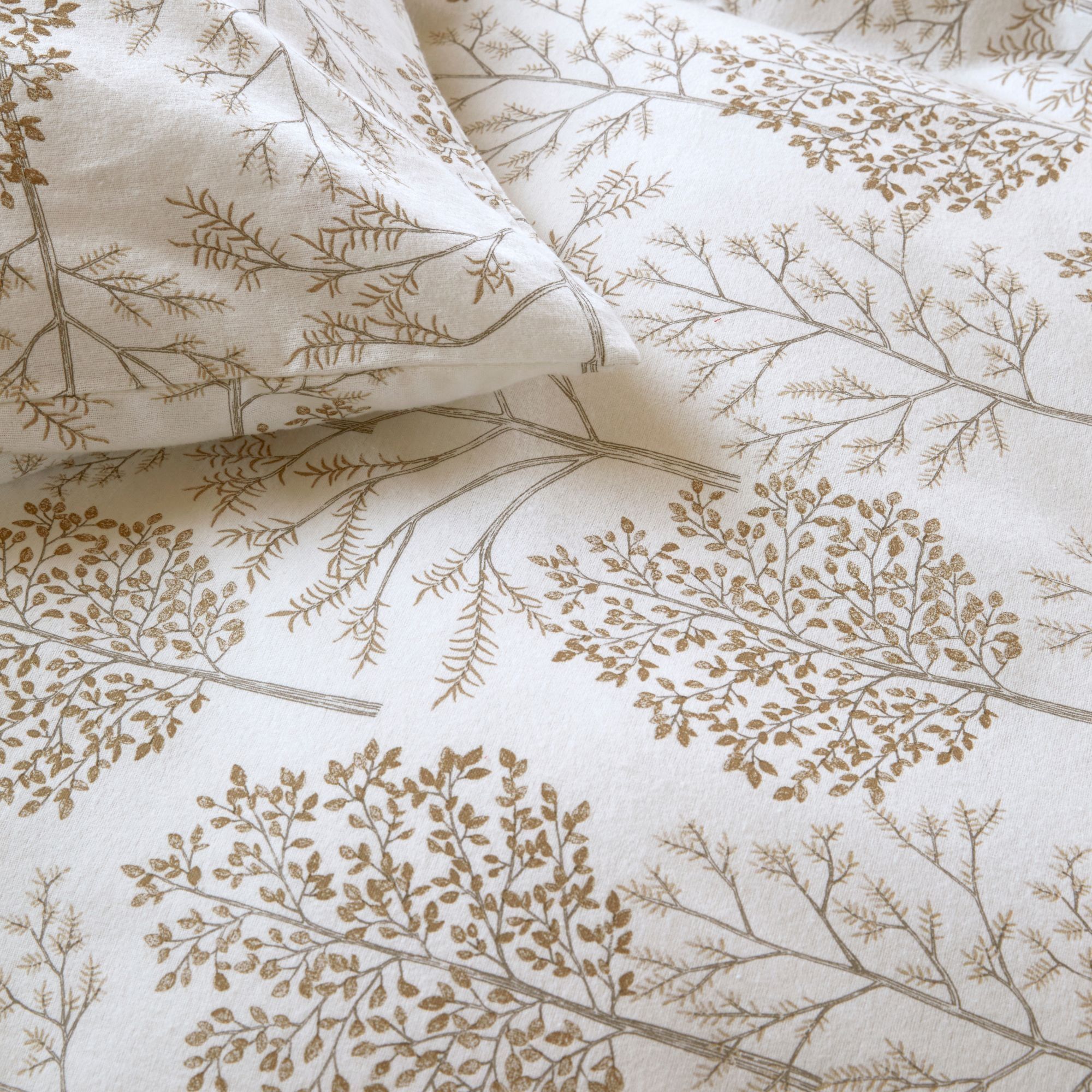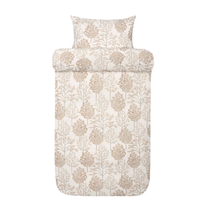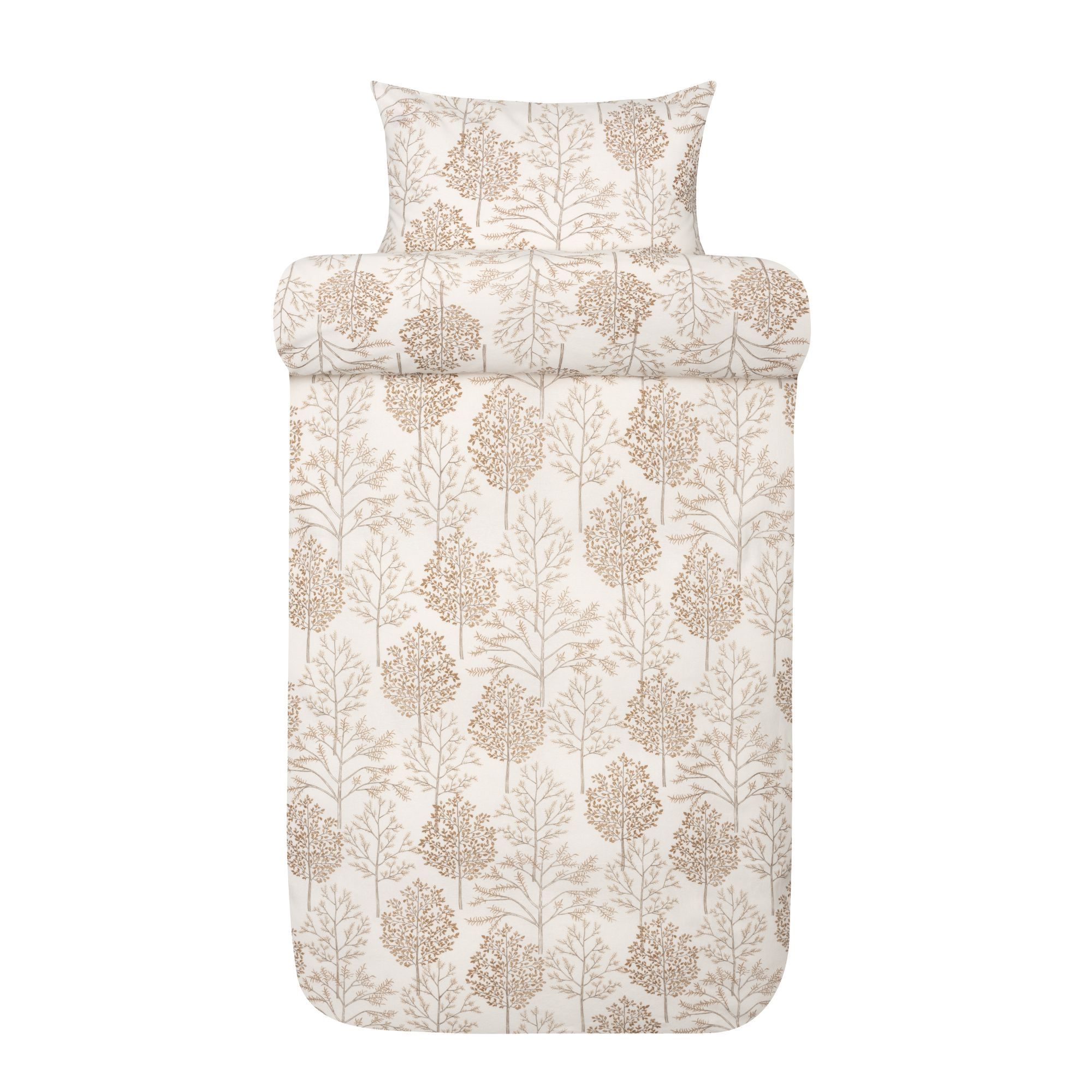 Flonel sengetøj 140x220 cm - Hvidt sengesæt med brune træer - 100% bomulds flonel - Thea Høie of Scandinavia sengelinned