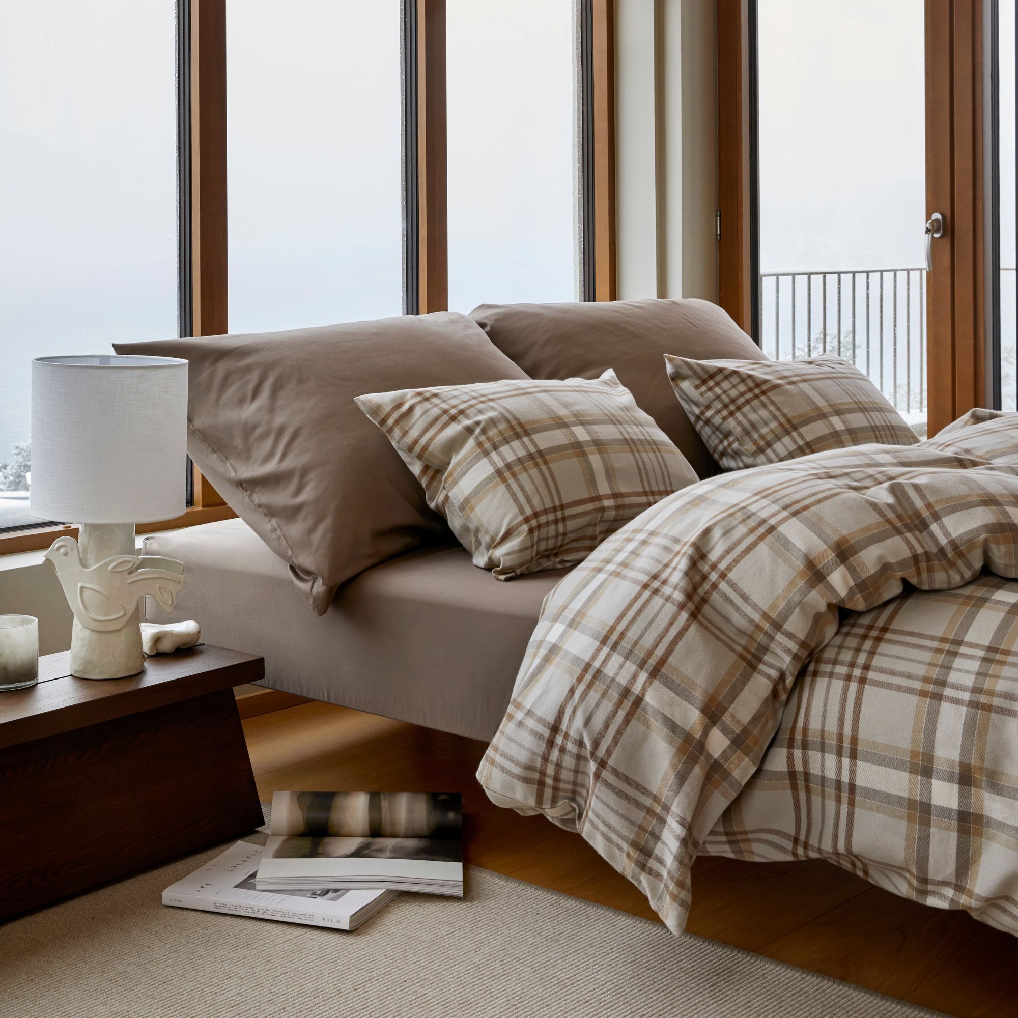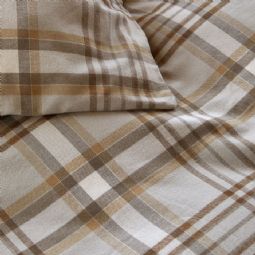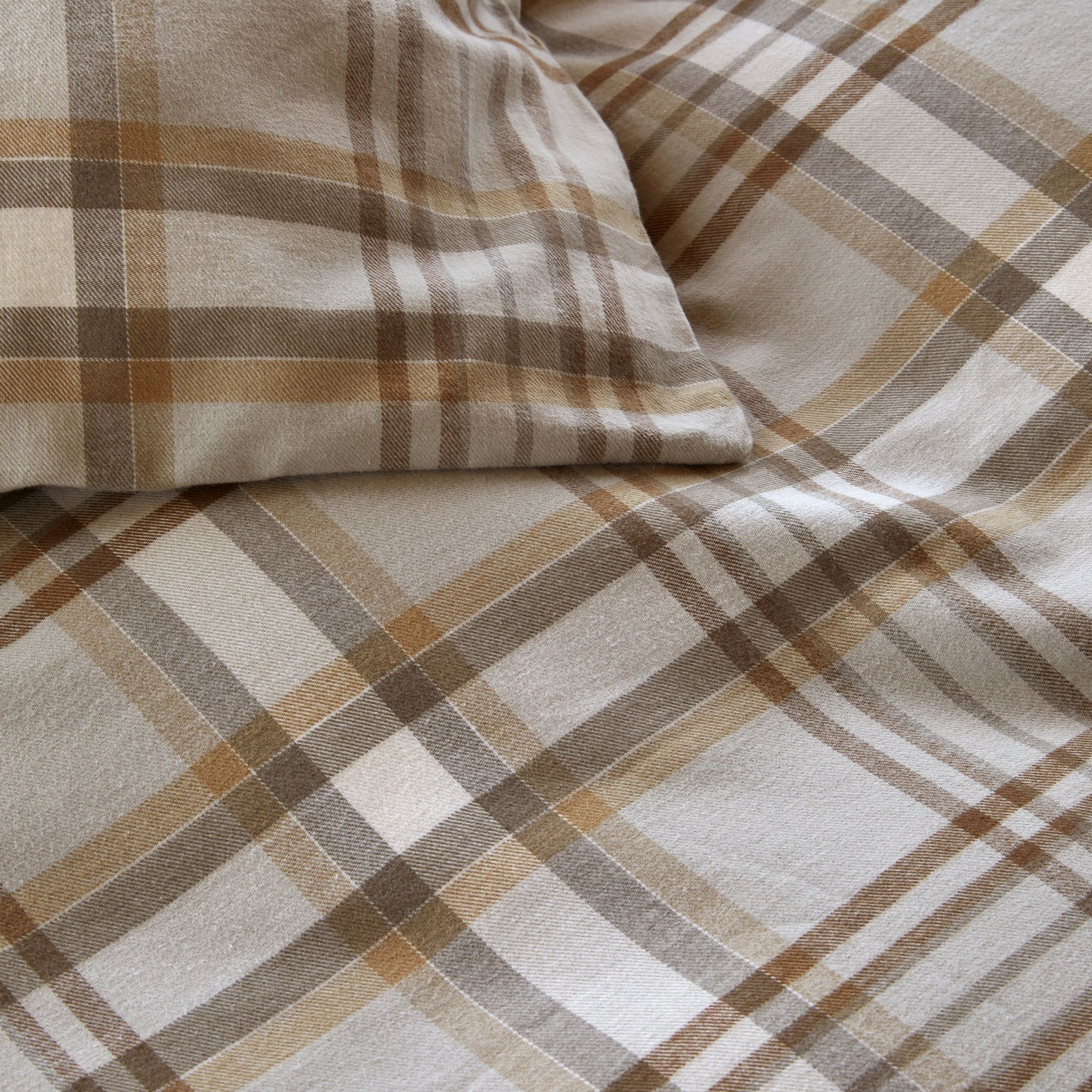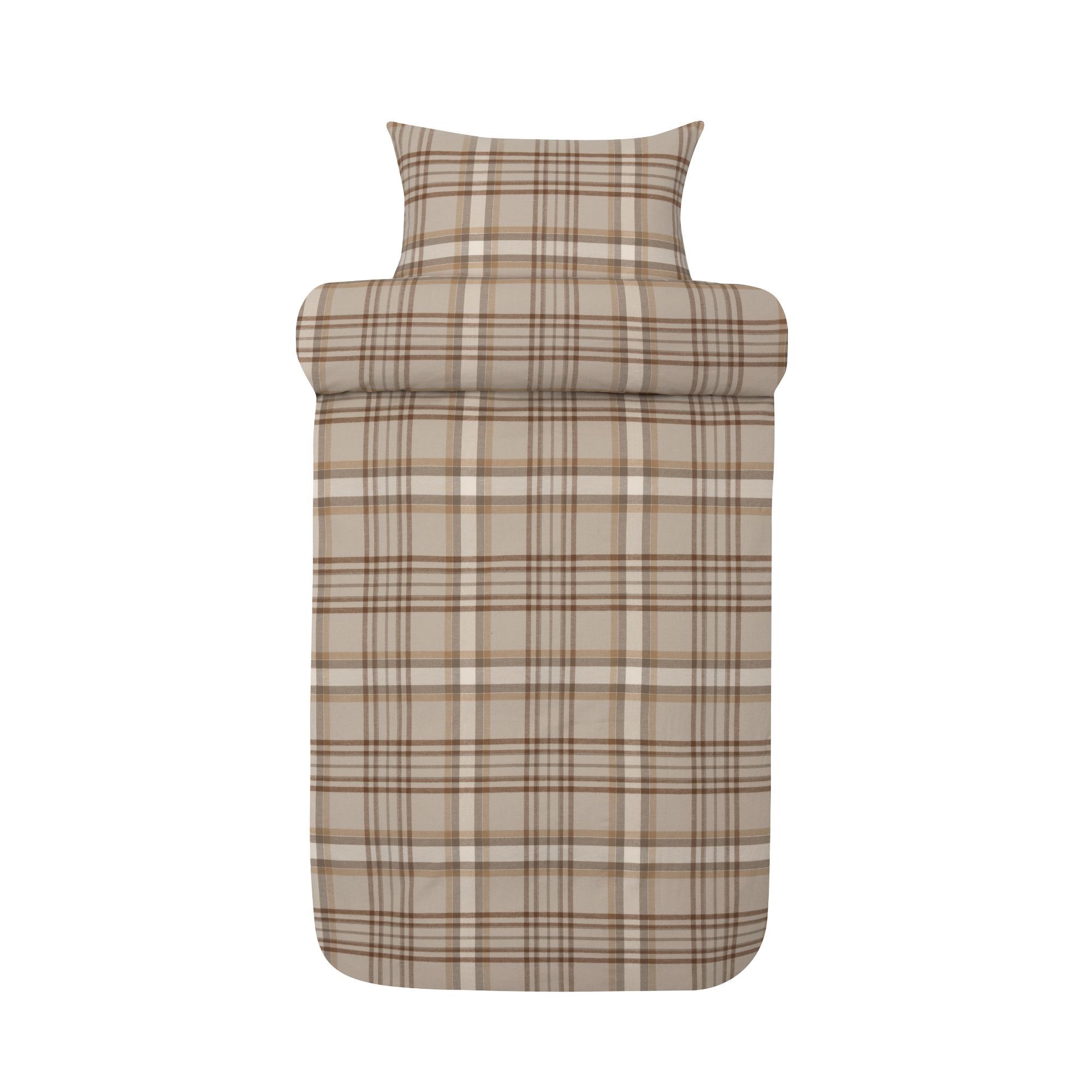 Flonel sengetøj 140x220 cm - Beige ternet sengesæt - 100% garnfarvet bomulds flonel - Richard Høie of Scandinavia sengelinned