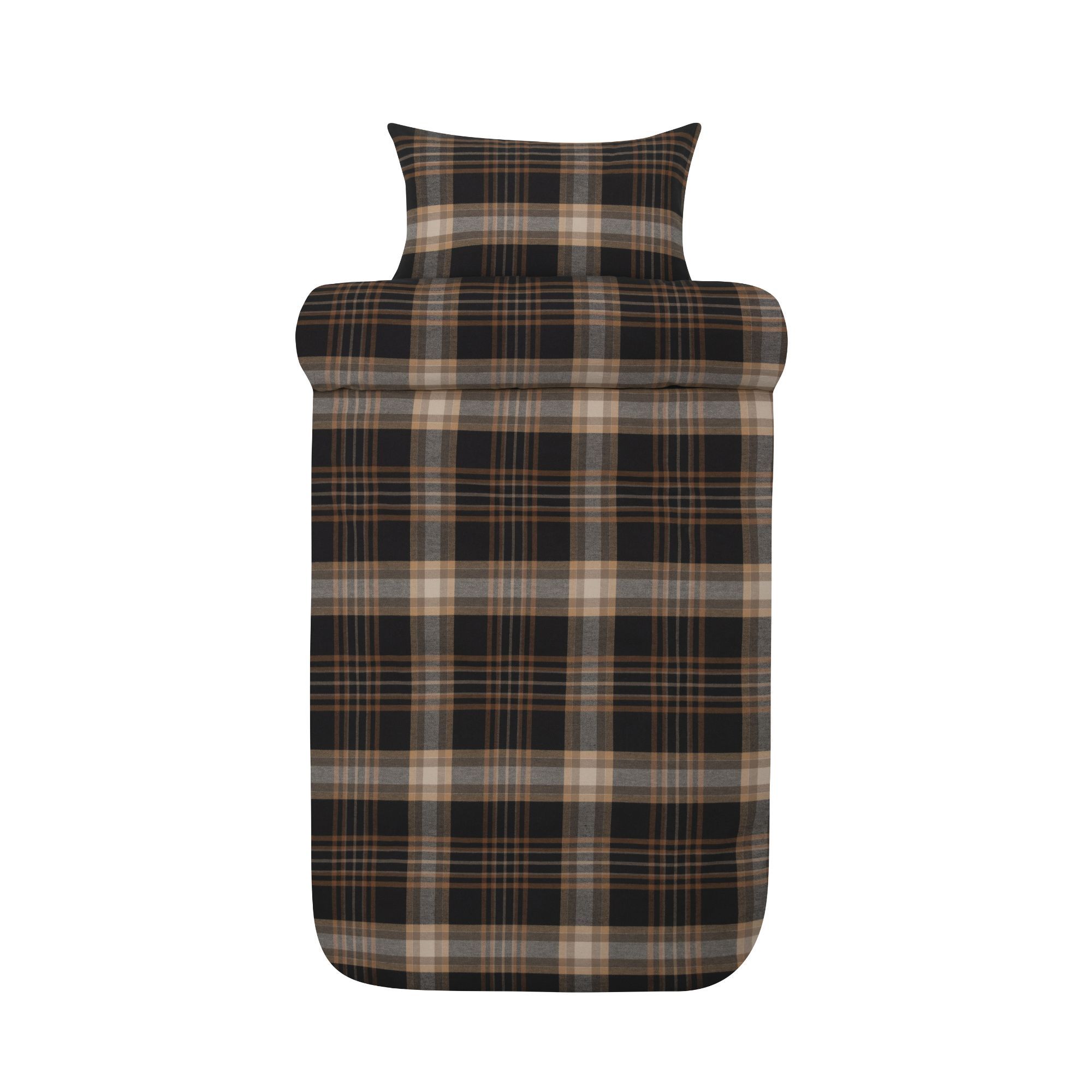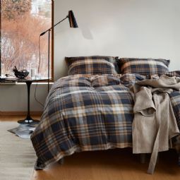 Flonel sengetøj 140x220 cm - Brunligt ternet sengesæt - 100% garnfarvet bomulds flonel - Richard Høie of Scandinavia sengelinned