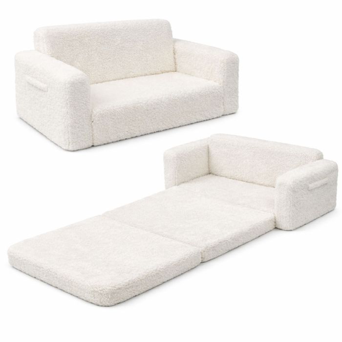 Foldesofa til børn - Hvid plys - Børnemøbel