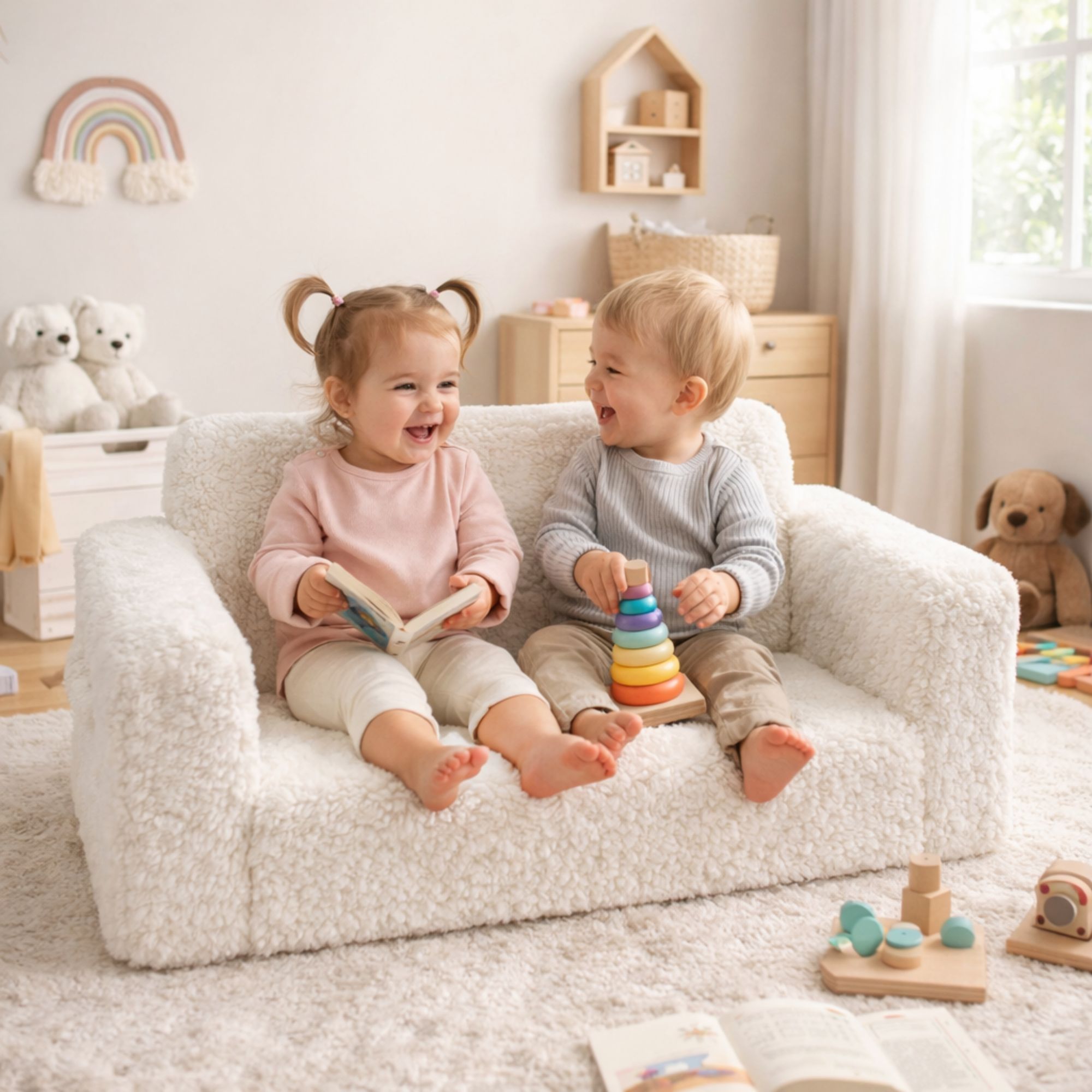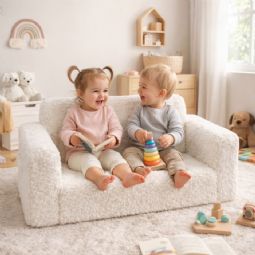Skab et hyggeligt og funktionelt hjørne på børneværelset med denne fine foldesofa i plys til børn fra Nordstrand Home. Den utrolig bløde børnesofa er lavet i et hvidt plys betræk, der passer perfekt ind i et nordisk inspireret børneværelse eller stue. Her får du en praktisk 2-i-1 løsning, der både fungerer som sofa til børn i hverdagen og som udklappelig madras, når der skal slappes af, læses bog eller tages en lille lur.
