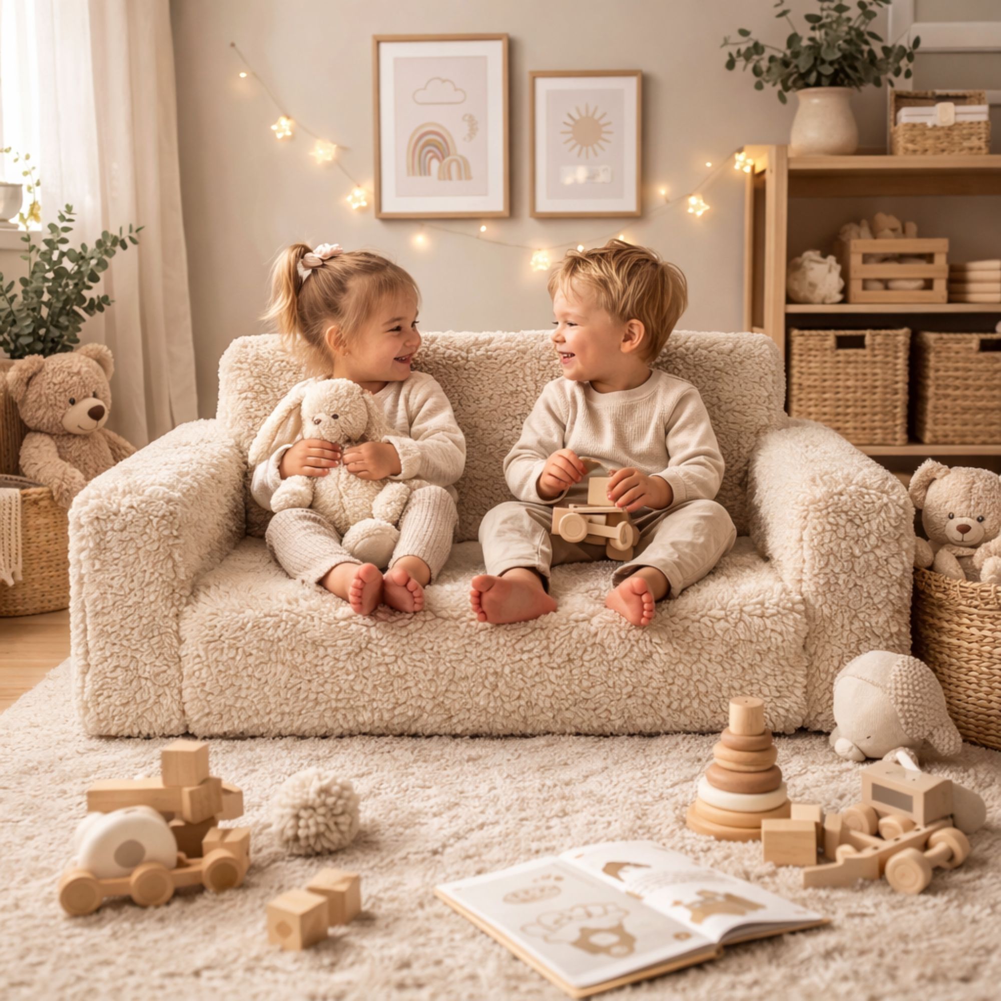 En foldesofa til børn som denne kombinerer komfort, leg og funktionalitet i ét møbel og bliver hurtigt et naturligt samlingspunkt på børneværelset.