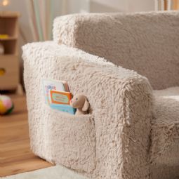 En ekstra praktisk detalje ved denne børnefoldesofa er de rummelige sidelommer på begge sider (22 cm brede og 18 cm høje). Her kan barnet opbevare bøger, bamser eller små skatte, så yndlingstingene altid er lige ved hånden. Det gør sofaen både hyggelig og funktionel - perfekt til både børneværelset og stuen.