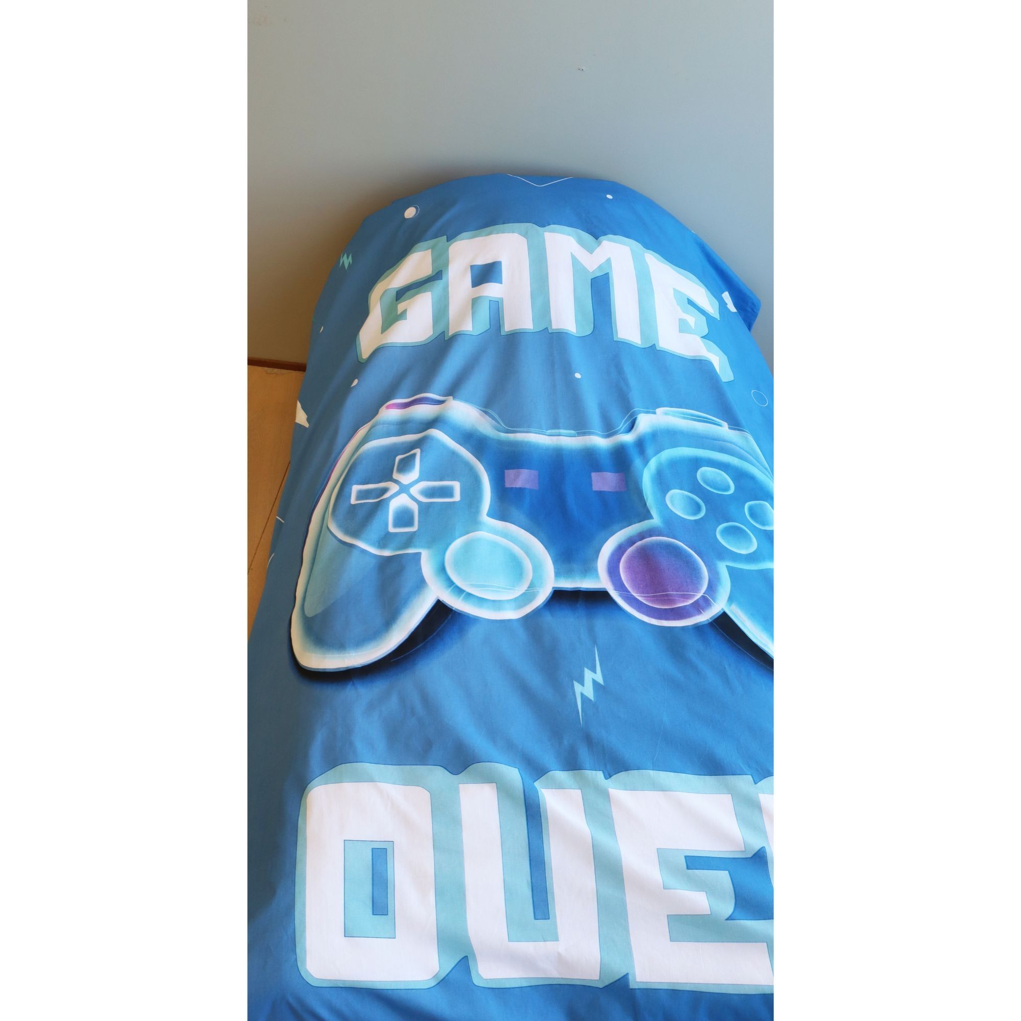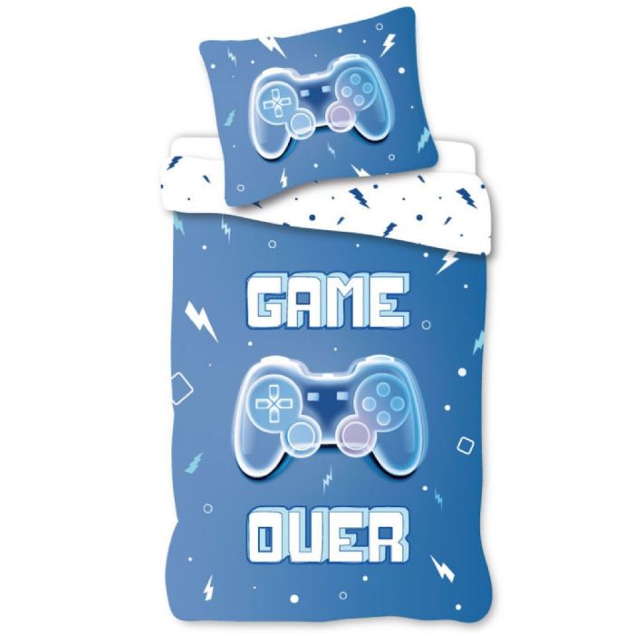 Gamer sengetøj - 100% bomuld - Børnesengetøj 140x200 cm - Blåt - Game Over