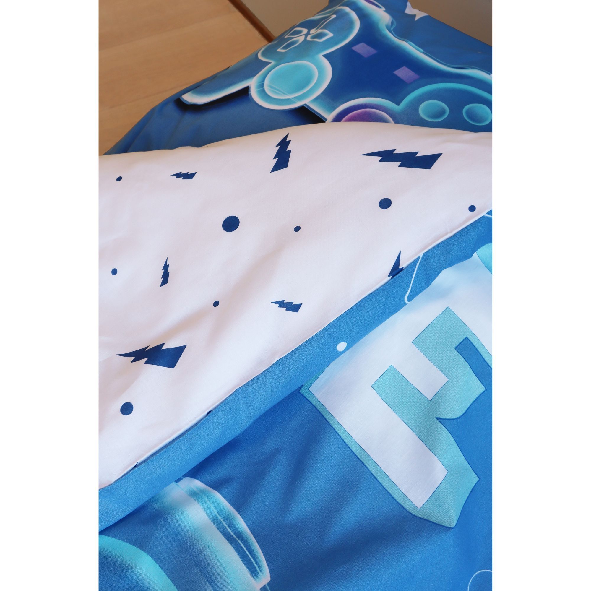 Gamer sengetøj 140x200 cm - Blåt gamer sengesæt i 100% bomuld
