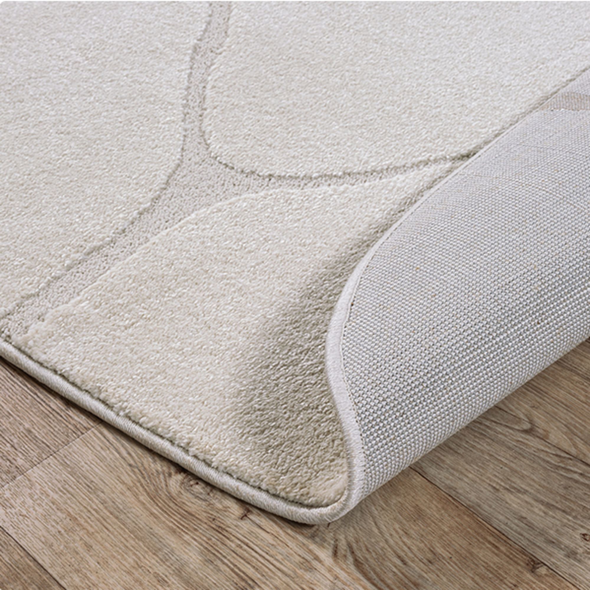 Dette flotte, moderne gulvtæppe kan nemt løfte hele rummets udtryk - og kan det bl.a. fordi det kombinerer komfort, slidstyrke og et stilfuldt grafisk design i én løsning. Det lyse tone-i-tone mønster med bløde, organiske buer pifter hjemmet op, og passer perfekt ind i både nordisk og minimalistisk indretning. Den cremefarvede nuance giver rummet et lyst og indbydende udtryk og fungerer flot sammen med alt fra lyse træsorter og beige toner til mere kontrastfyldte omgivelser.
