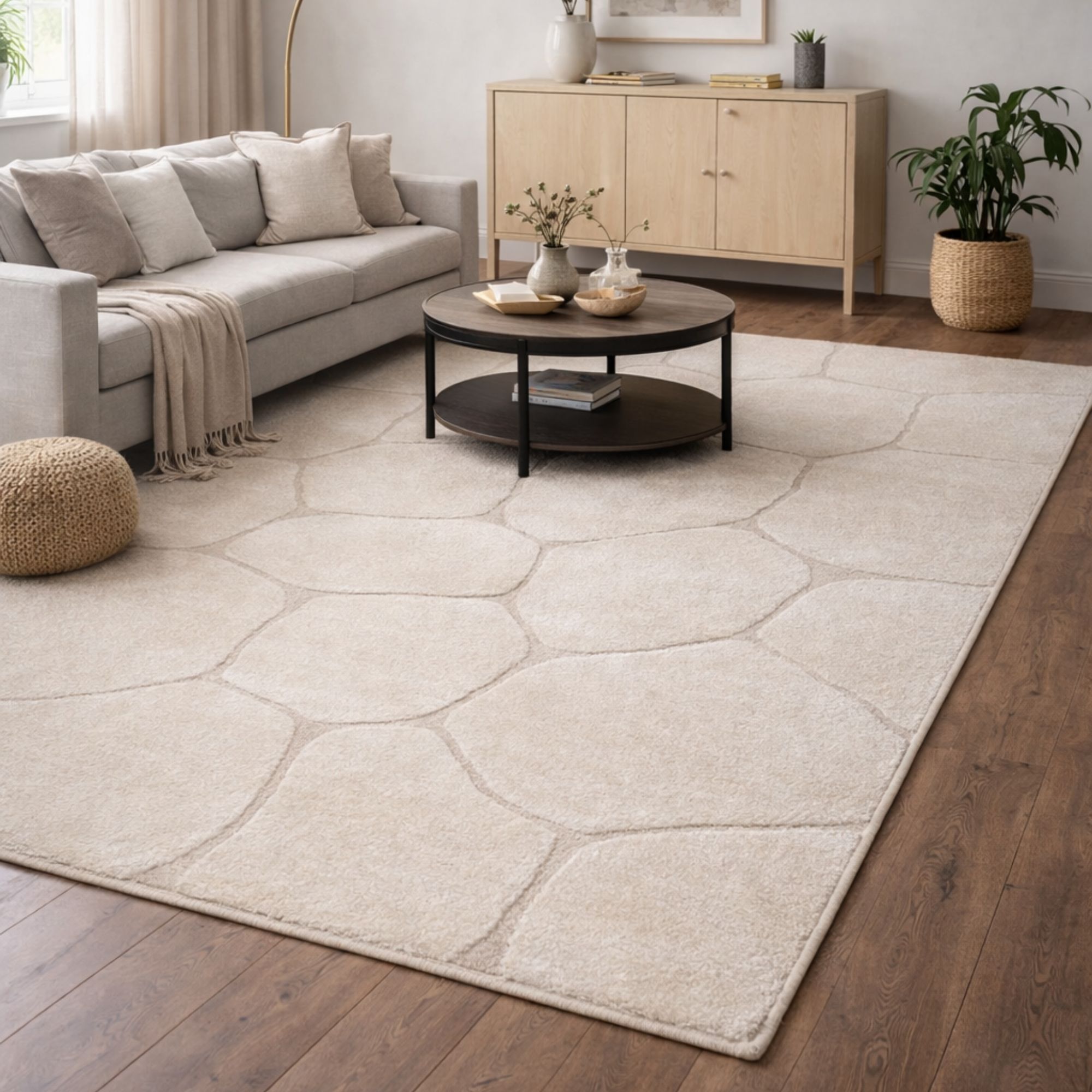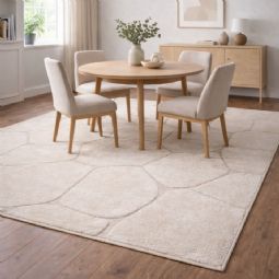 Gulvtæppe - 140x200 cm - Vævet - Cremefarvet - Mønster sten - Elio - Nordstrand Home
