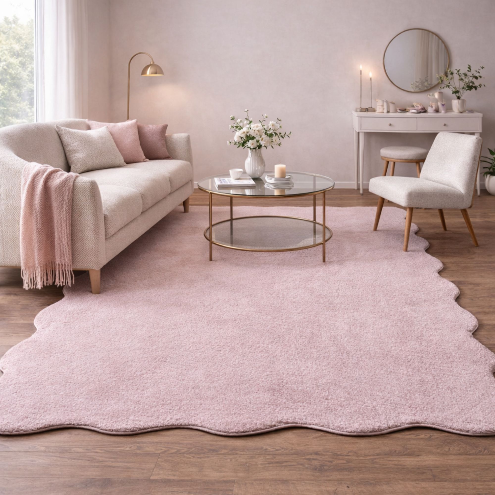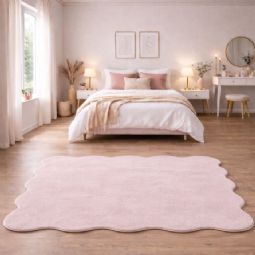 Dette blush gulvtæppe fra Loft Shape-serien kombinerer blød komfort med et moderne og feminint strejf. Den sarte rosa farve skaber en varm og hyggelig stemning i rummet og passer perfekt ind i både soveværelse, teenageværelse eller børneværelset.Gulvtæppet er fremstillet i polyester hvilket giver en ekstra blød og behagelig overflade. Den tætte og bløde luv føles komfortabel under fødderne og gør tæppet ideelt ved siden af sengen, i en hyggekrog eller som et centralt element i rummet. Den dekorative form adskiller sig fra klassiske rektangulære tæpper og tilfører indretningen et legende og stilrent udtryk. Det fungerer både som et visuelt blikfang og som en praktisk løsning, der tilfører varme og komfort til gulvet.