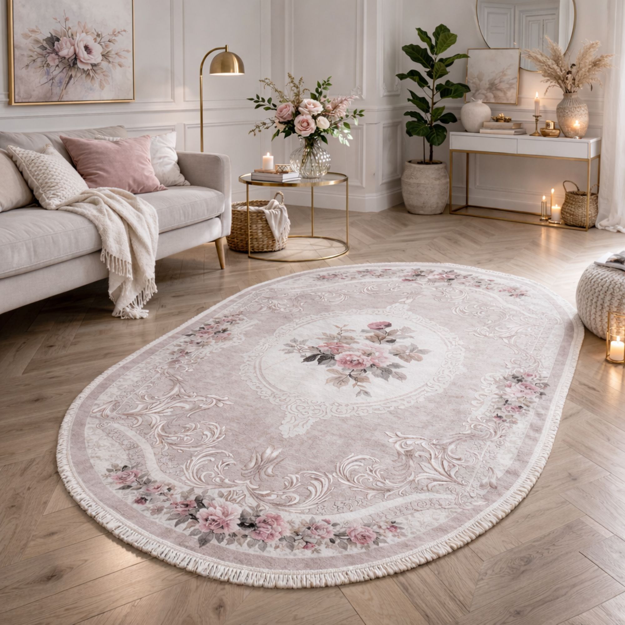 Gulvtæppe - 140x200 oval - Rose - Sunshine - Nordstrand Home
