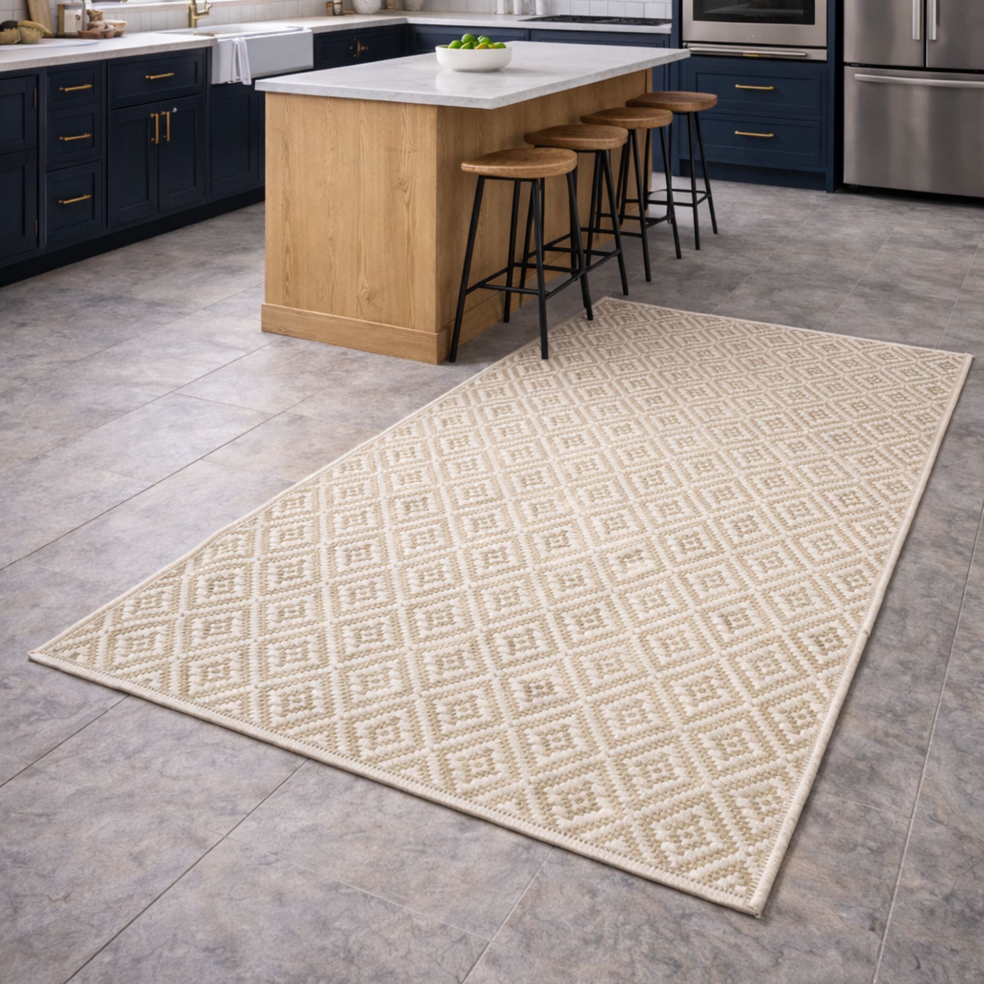 Savner du en enkel og nem måde at skabe noget helhed i dit hjem? Så kan dette flotte gulvtæppe kan være dét element, der binder indretningen sammen.