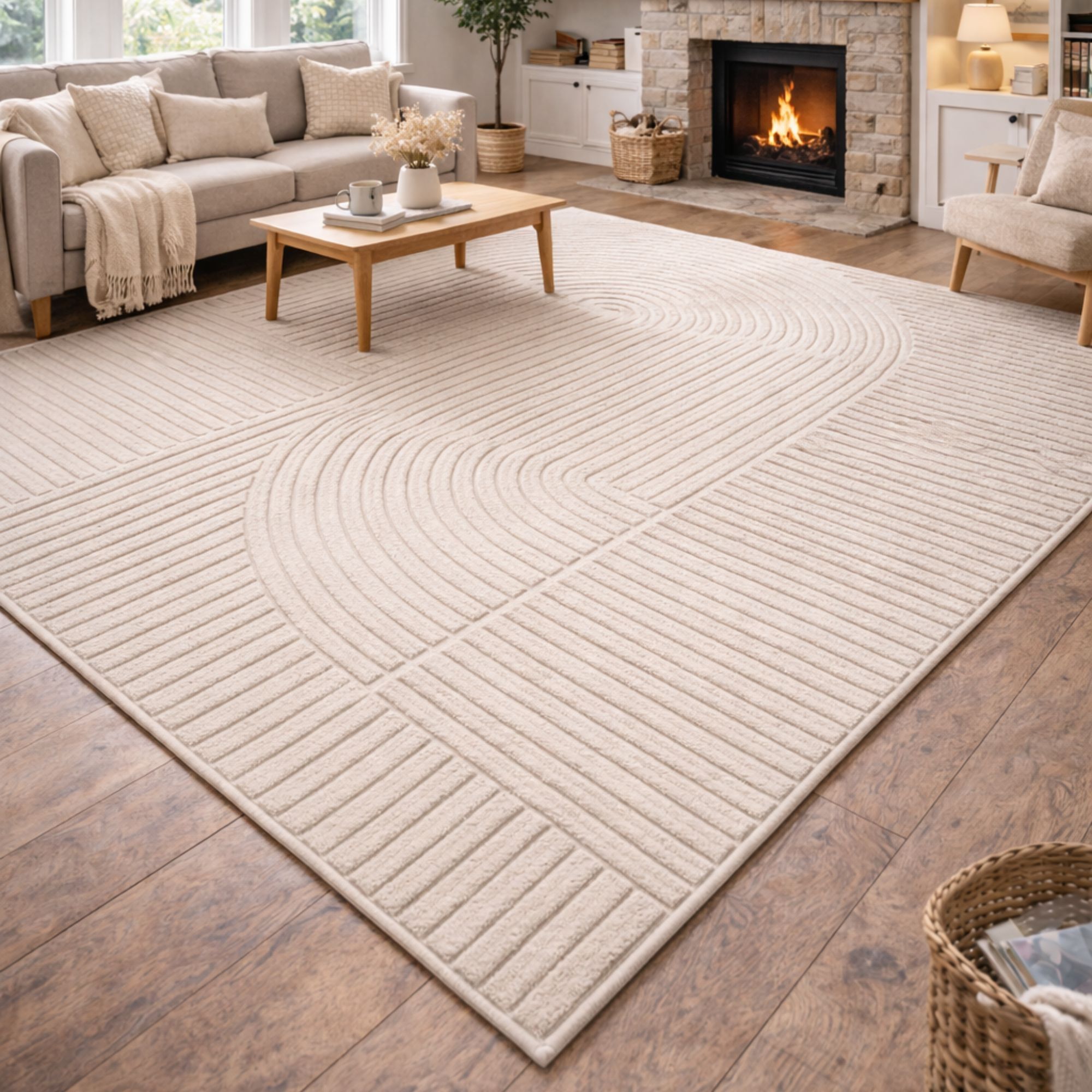 Dette flotte, store moderne gulvtæppe kan nemt løfte hele rummets udtryk - og kan det bl.a. fordi det kombinerer komfort, slidstyrke og et stilfuldt grafisk design i én løsning. Det lyse tone-i-tone mønster med bløde, organiske buer pifter hjemmet op, og passer perfekt ind i både nordisk og minimalistisk indretning. Den cremefarvede nuance giver rummet et lyst og indbydende udtryk og fungerer flot sammen med alt fra lyse træsorter og beige toner til mere kontrastfyldte omgivelser.