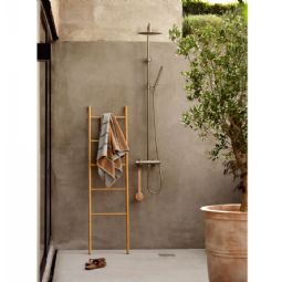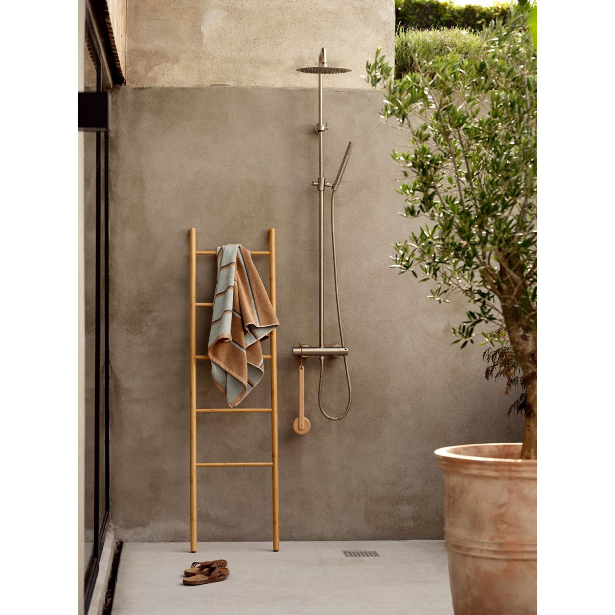 Den høje bomuldskvalitet giver en god absorberingsevne og er behagelig at tørre sig med efter badet. Designet er inspireret af de rene linjer fra klassiske saunaer og kombinerer funktionalitet med et moderne grafisk udtryk. Håndklædet er OEKO-TEX® certificeret, hvilket er din garanti for, at produktet er fri for skadelige kemikalier og sikkert at bruge mod huden.
