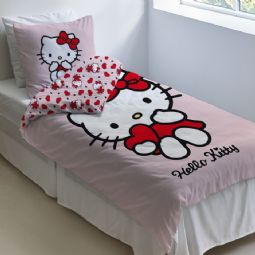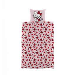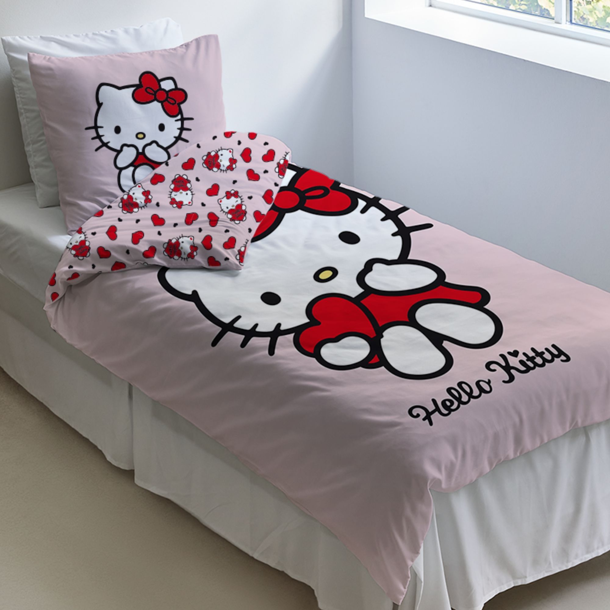 Hello Kitty sengetøj – Bomuldssengesæt med Hello Kitty og hjerter