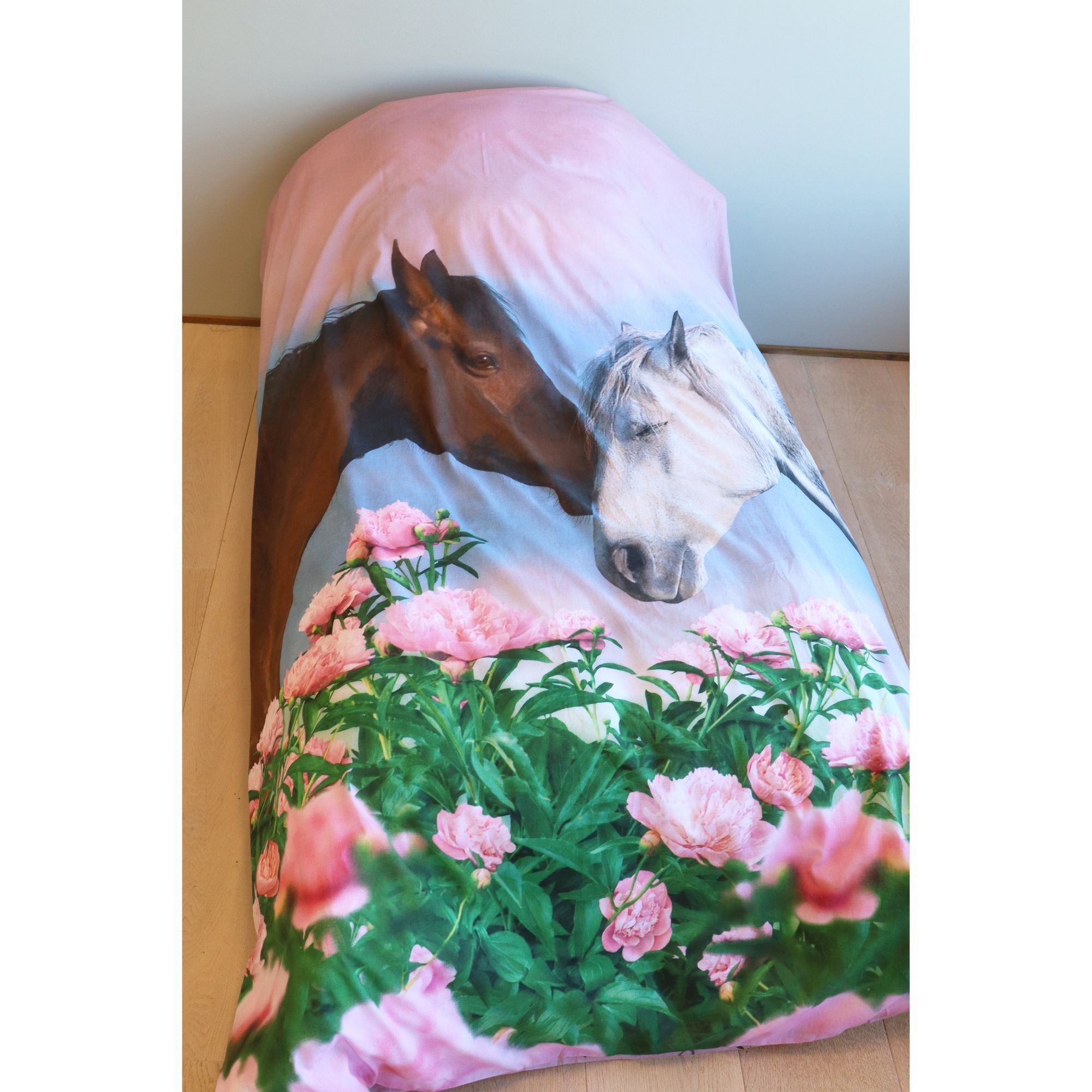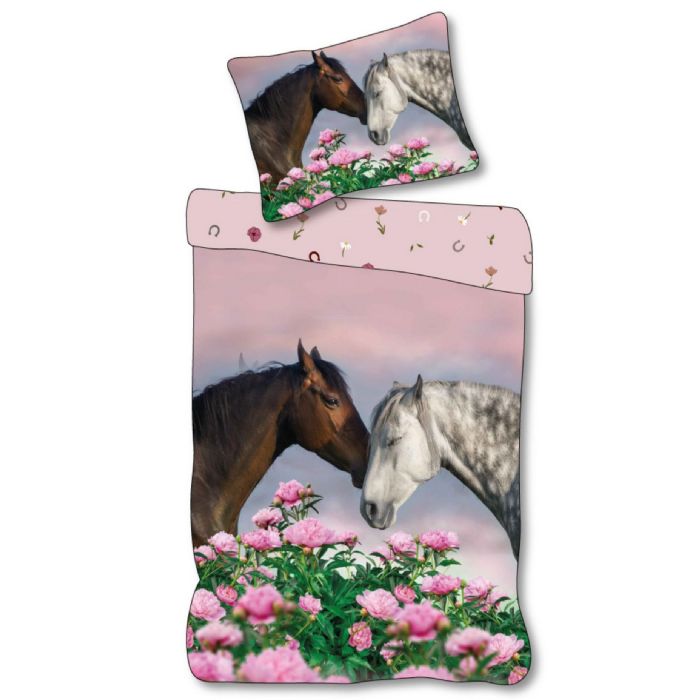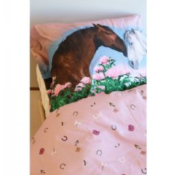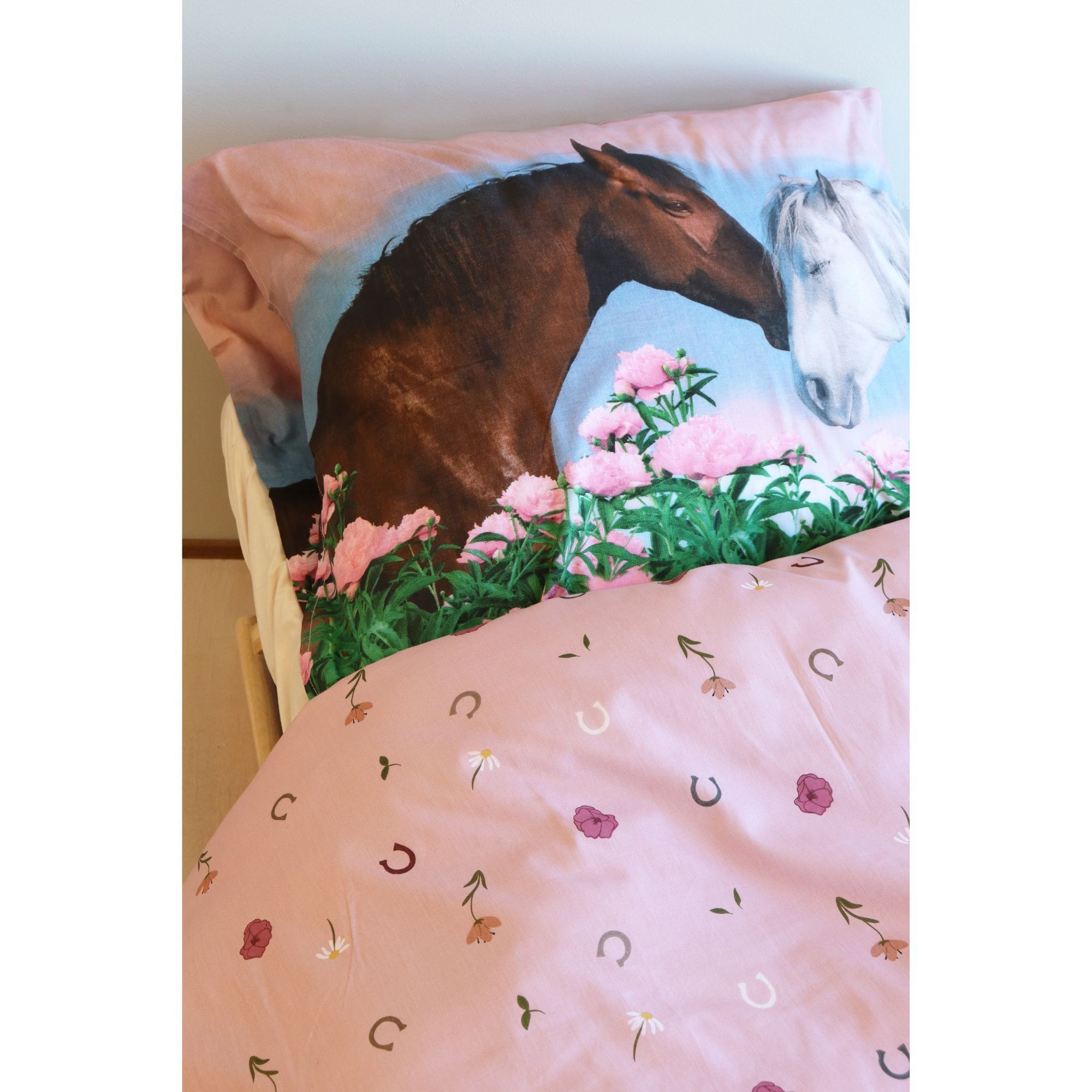 Heste sengetøj - 100% bomuld - Børnesengetøj 140x200 cm - Lyserød