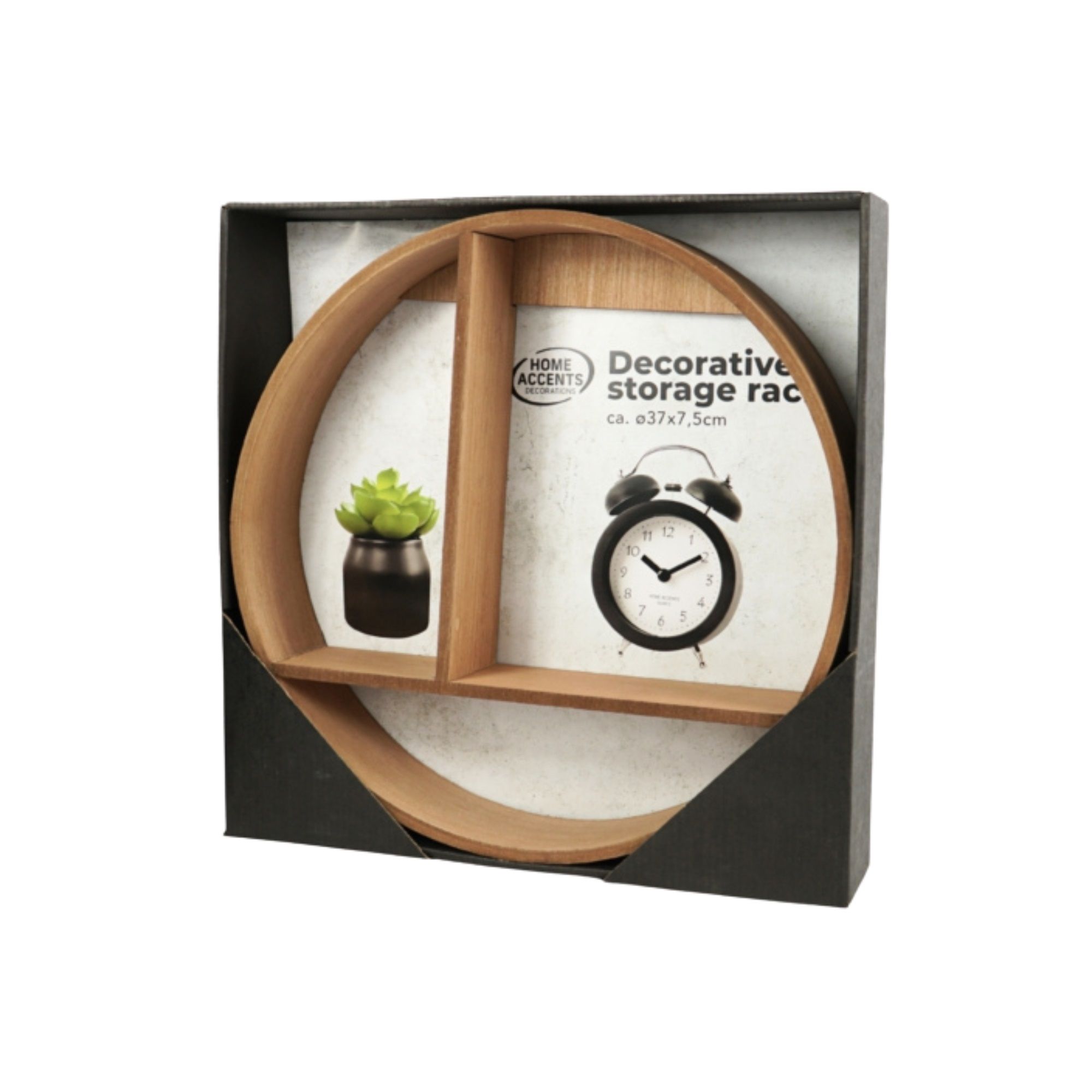 Skab et stilfuldt og personligt udtryk i dit hjem med denne runde væghylde i træ. Med sit moderne og dekorative design er hylden både praktisk og flot - perfekt til at fremhæve dine yndlingsgenstande.