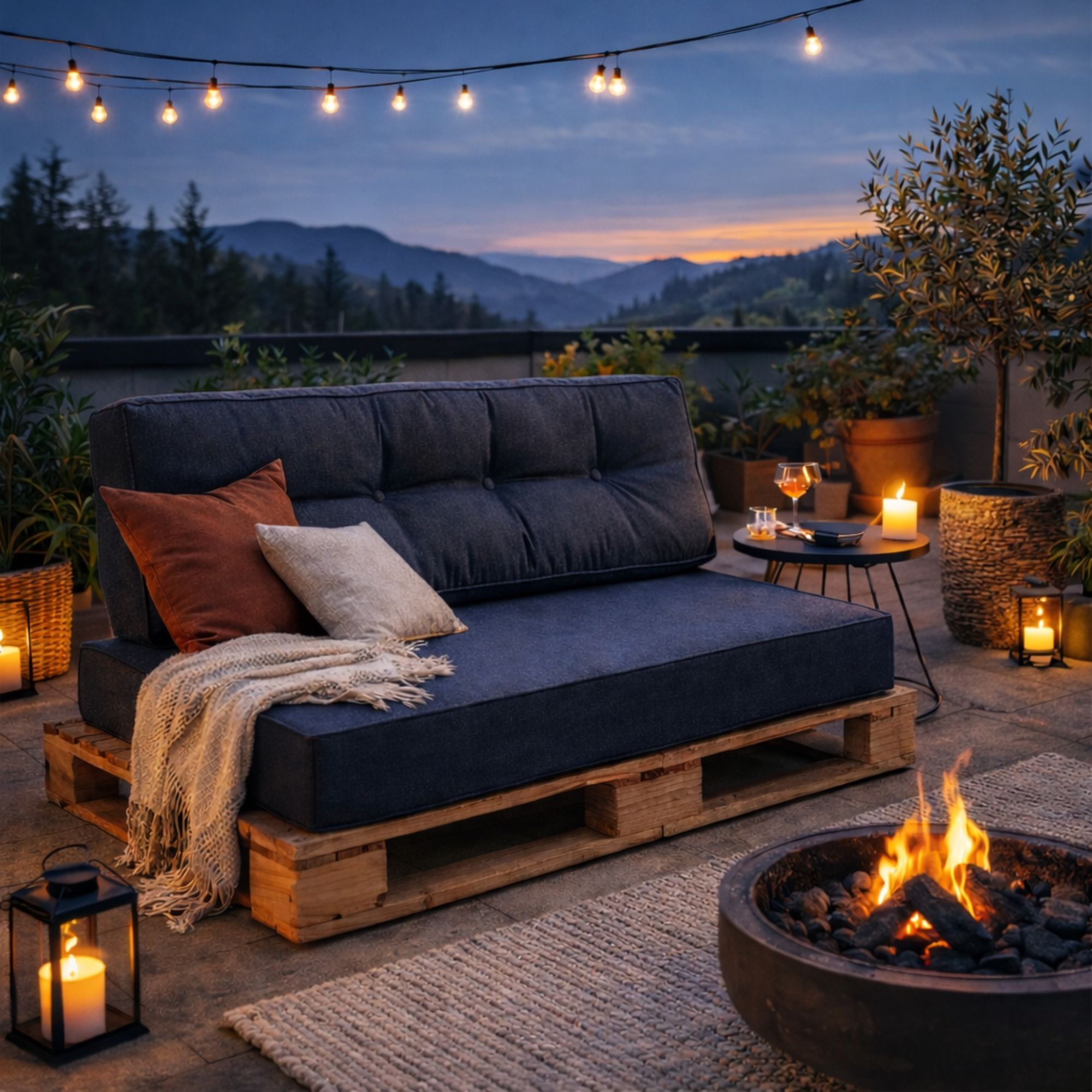 Hyndesæt til pallesofa - 120x80 cm - 15 cm tyk hynder til pallesofa - Mørkeblå pallehynder - Nordstrand Home pallesofa hynder