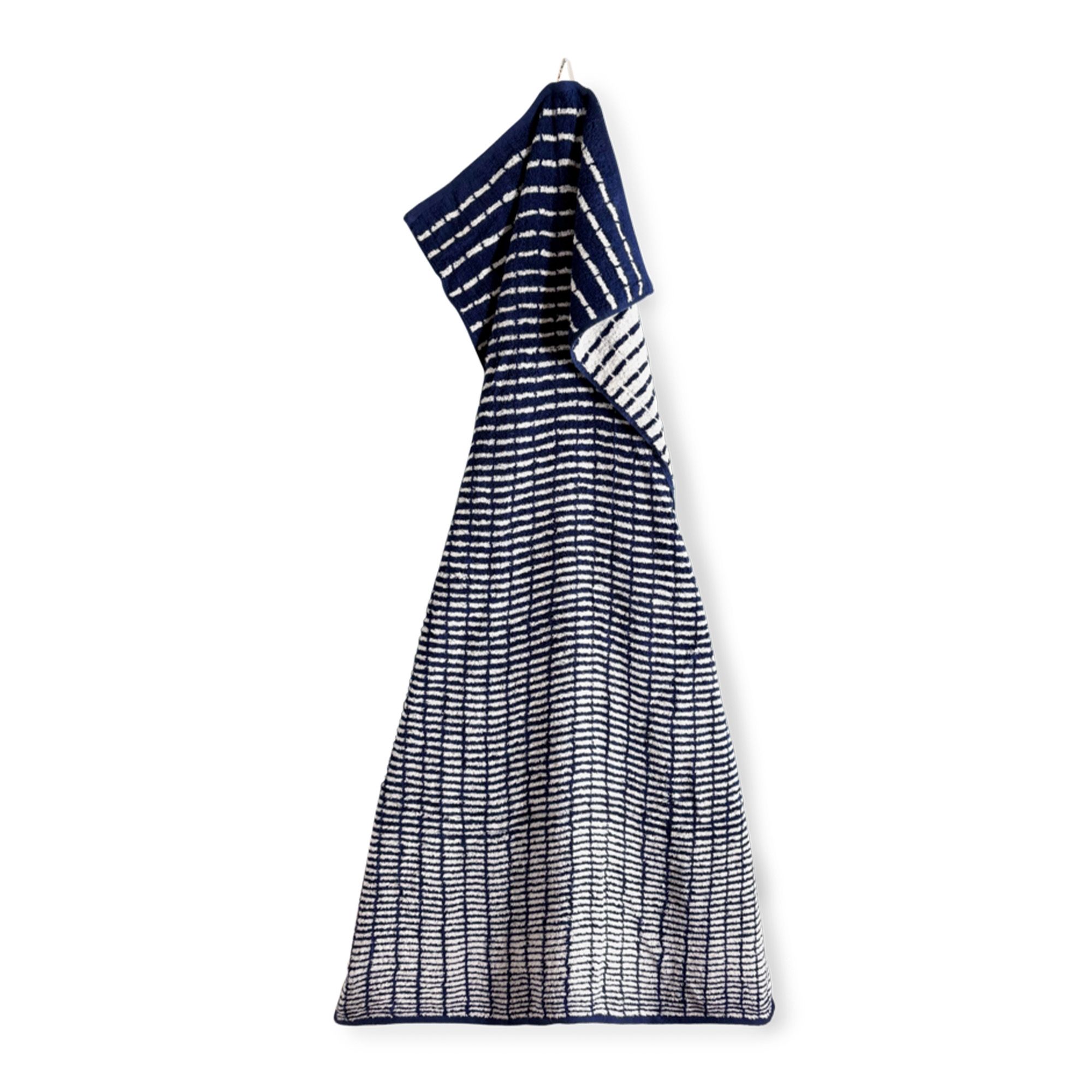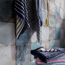 Den fine vævning kombineret med det elegante mønster i blå/hvid skaber et stilrent og roligt udtryk, der passer ind i ethvert moderne badeværelse. Håndklædet er ikke kun flot at se på og har en høj absorberingsevne og hurtig tørring, så du altid har et friskt håndklæde ved hånden.