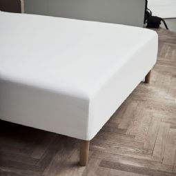 Den klassiske hvide farve skaber et rent og stilfuldt udtryk i soveværelset og passer perfekt sammen med alle typer sengetøj. Percalevævningen består af fine, tætvævede bomuldstråde, som gør lagnet slidstærkt og giver en frisk, kølig fornemmelse mod huden.
