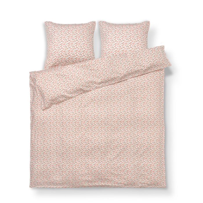 JUNA dobbelt sengetøj 200x220 cm - 100% økologisk bomuldssatin - Pleasantly hvid med rosa blomster
