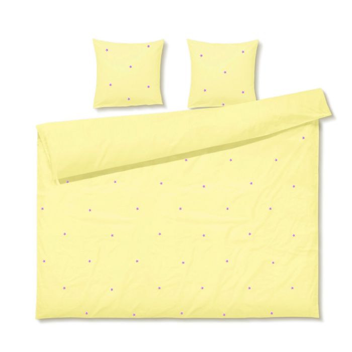 Daisy dobbeltsengetøj i økologisk bomuld - gul med broderede blomster