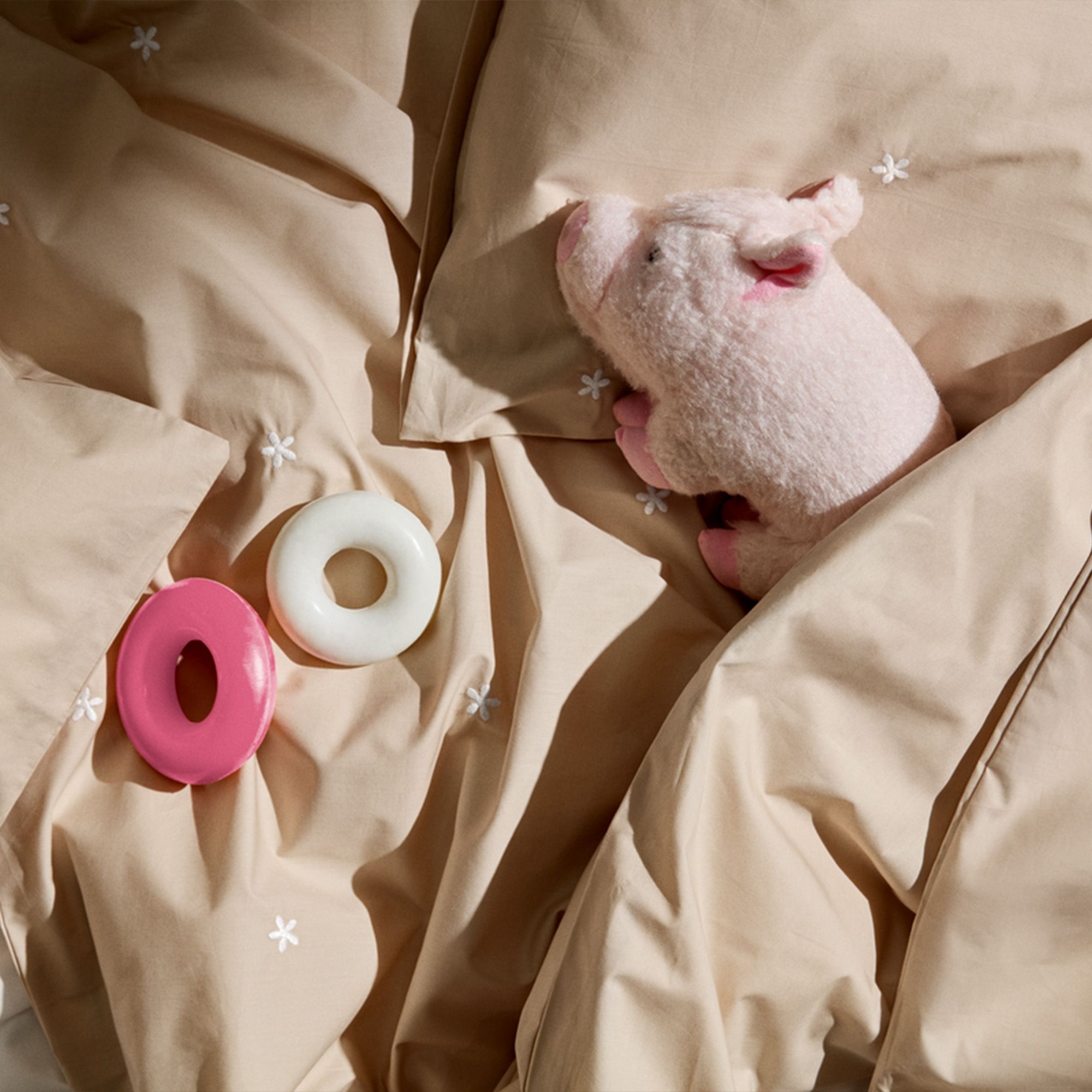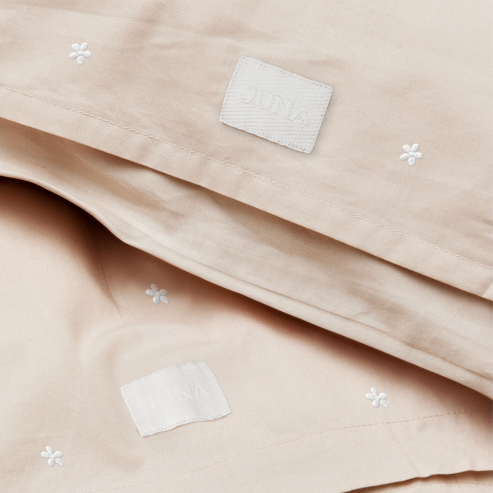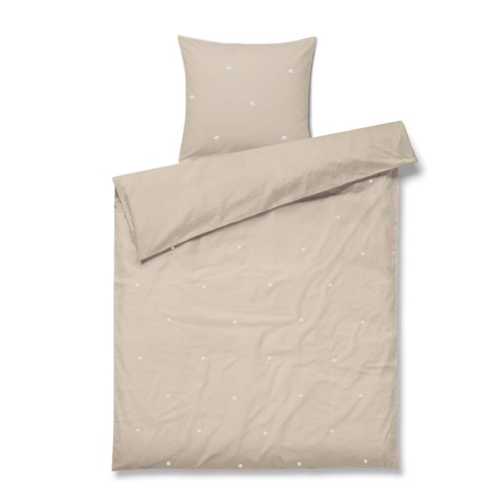 JUNA sengetøj - 100% økologisk bomuld - Daisy baby sengetøj 70x100 cm - Sand med broderede blomster