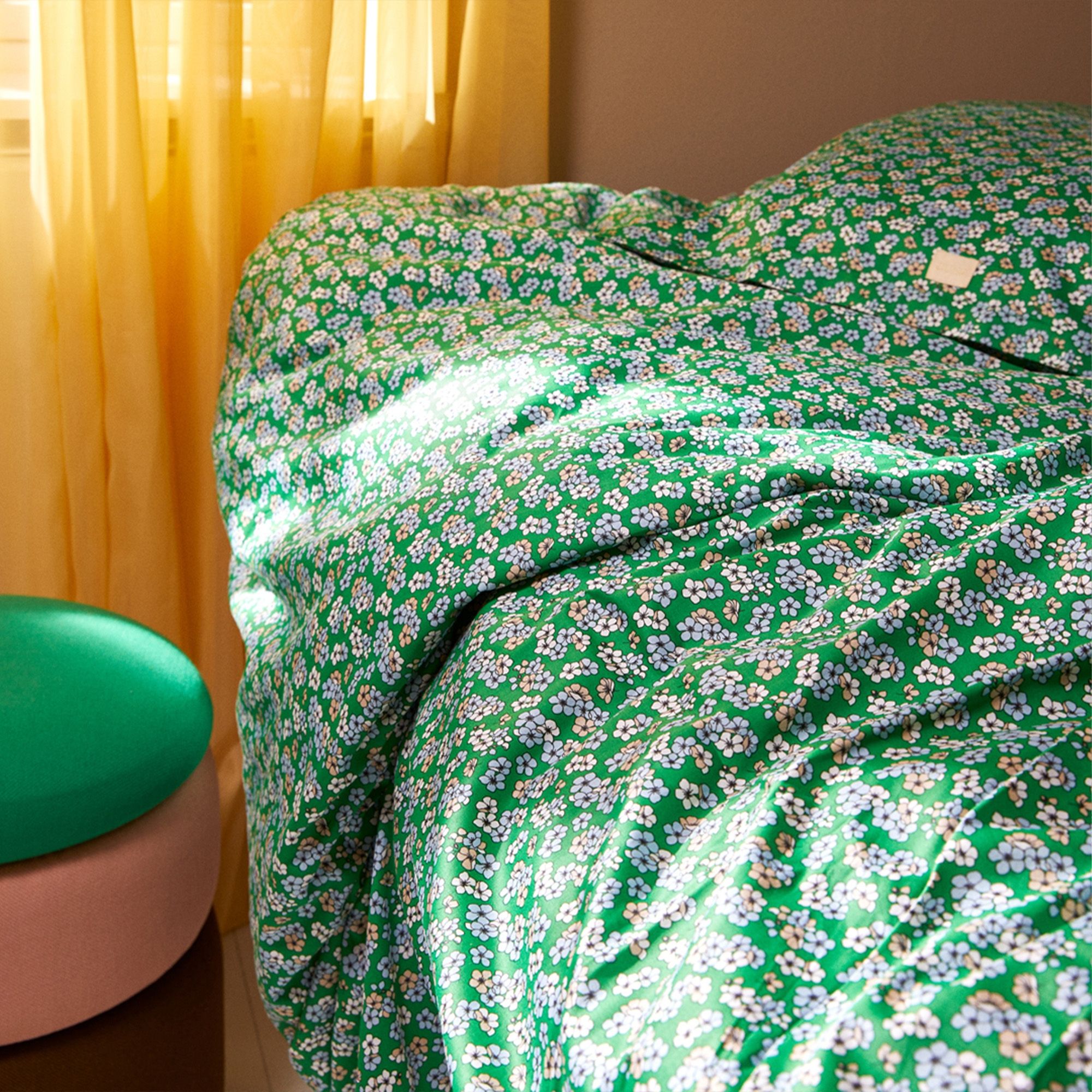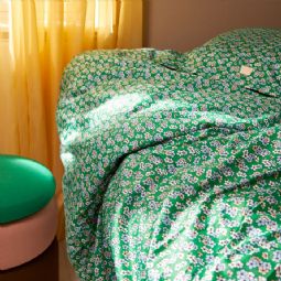 JUNA sengetøj 140x200 cm - 100% økologisk bomuldssatin - Pleasantly grøn med blomster