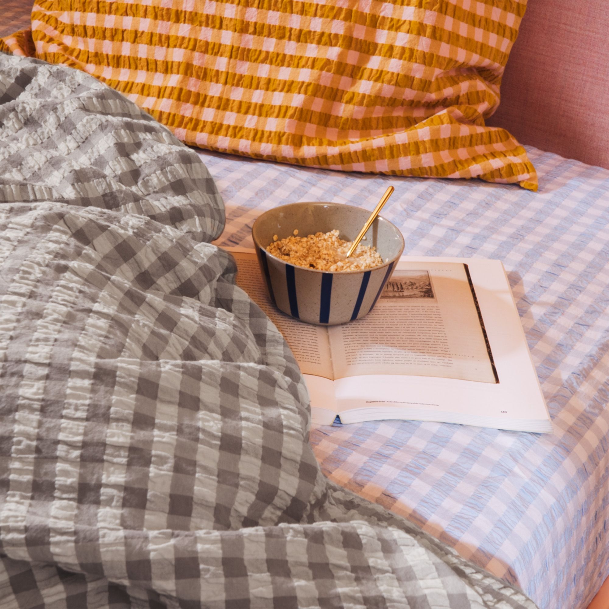 Det bløde bomuld kombineret med den krøllede struktur giver en unik følelse af luksus. Samtidig er sengetøjet praktisk i hverdagen, da det ikke kræver strygning og holder sit flotte udtryk vask efter vask. De fine tern i grå og birk giver et roligt og stilrent look, der passer ind i både moderne og klassiske soveværelser.