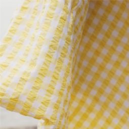 Det bløde bomuld kombineret med den krøllede struktur giver en unik følelse af luksus. Samtidig er sengetøjet praktisk i hverdagen, da det ikke kræver strygning og holder sit flotte udtryk vask efter vask. De fine tern i gul giver et roligt og stilrent look, der passer ind i både moderne og klassiske soveværelser.