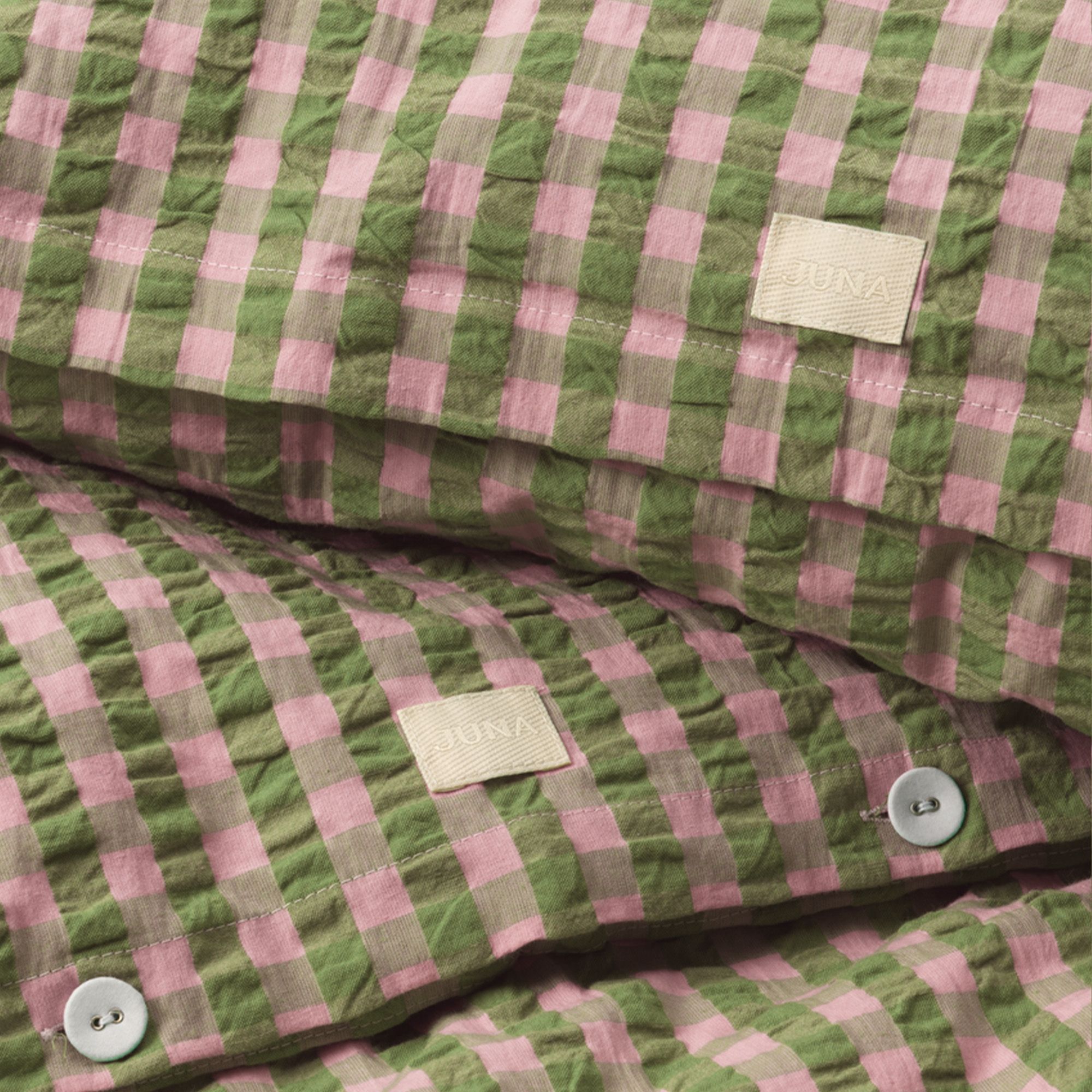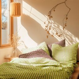 Det bløde bomuld kombineret med den krøllede struktur giver en unik følelse af luksus. Samtidig er sengetøjet praktisk i hverdagen, da det ikke kræver strygning og holder sit flotte udtryk vask efter vask. De fine tern i grøn giver et roligt og stilrent look, der passer ind i både moderne og klassiske soveværelser.
