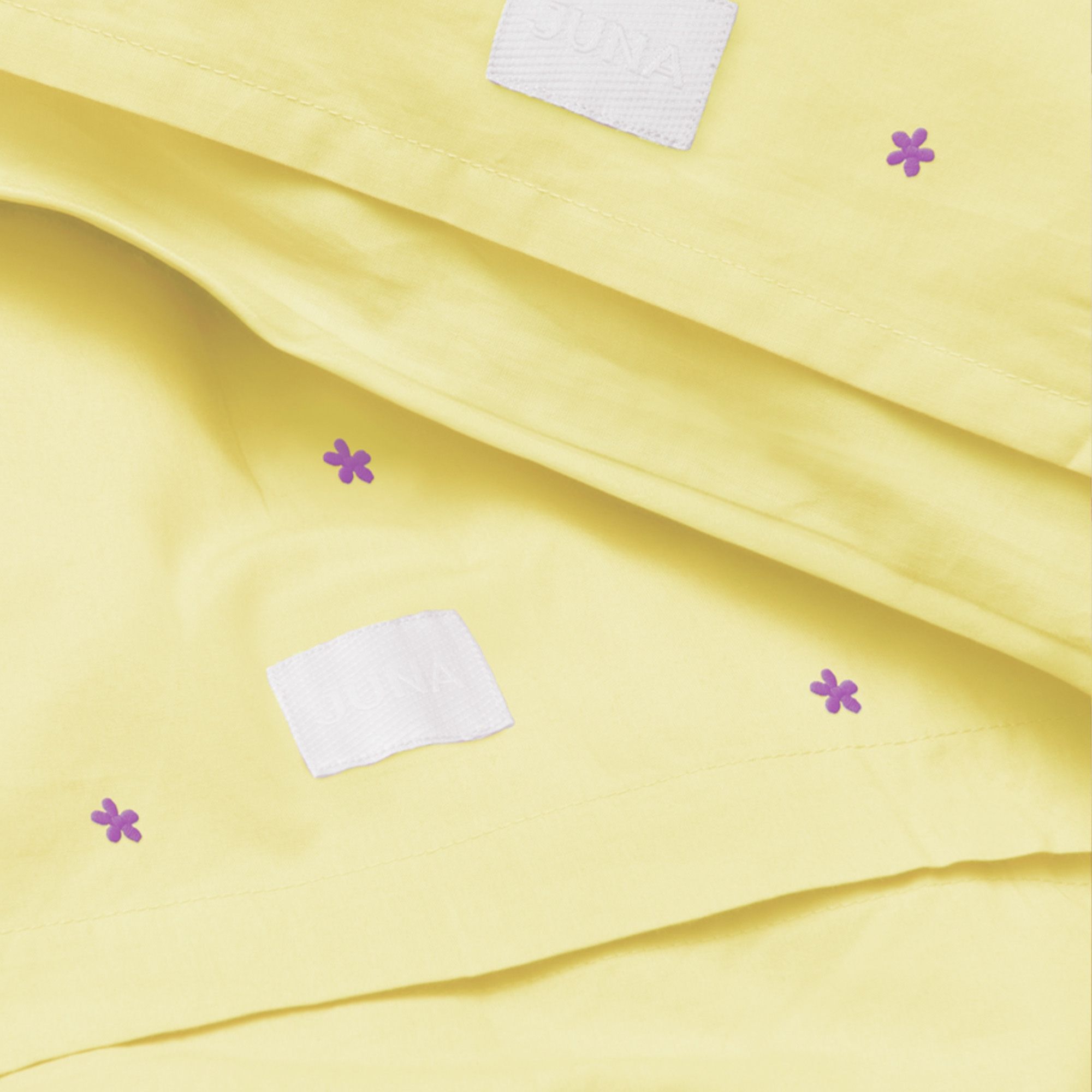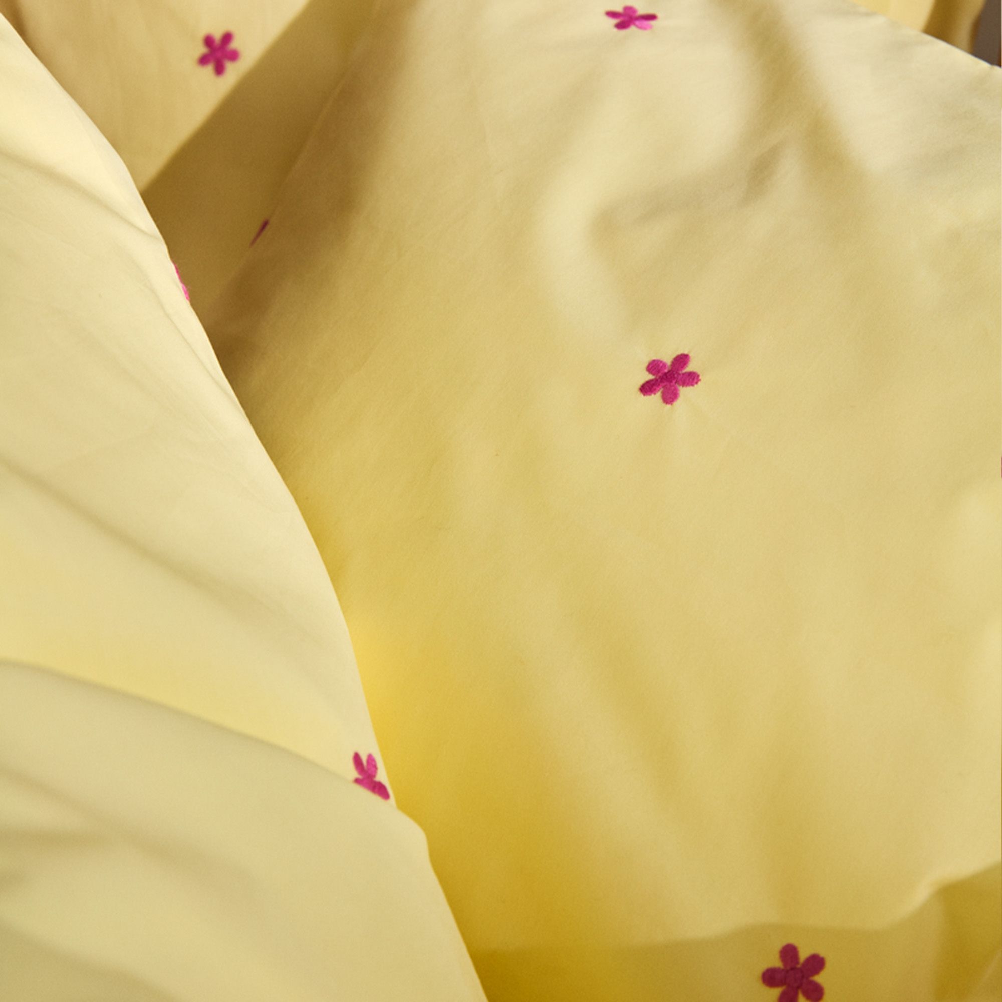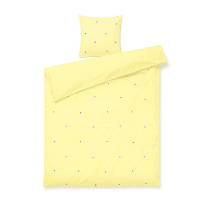 JUNA sengetøj 140x220 cm - 100% økologisk bomuld - Daisy gul med broderede blomster