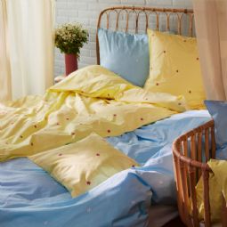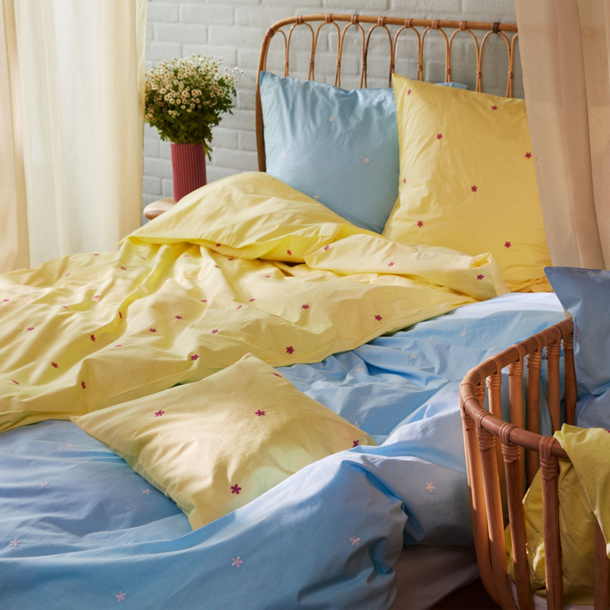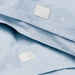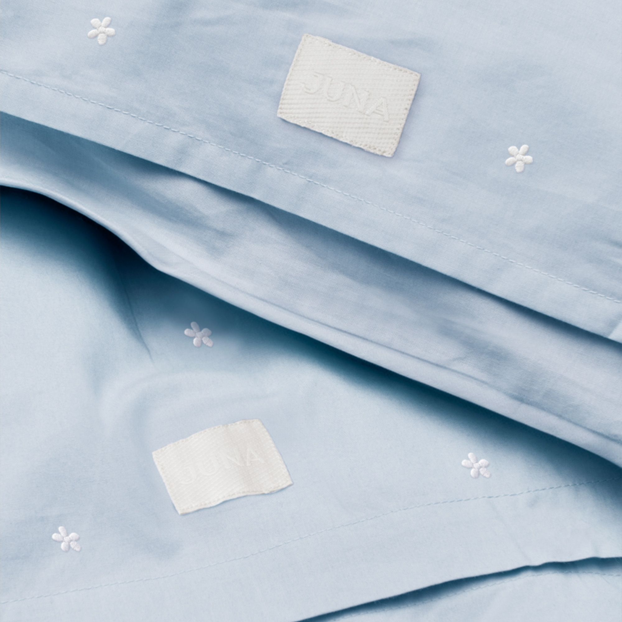 JUNA sengetøj 140x220 cm - 100% økologisk bomuld - Daisy lyseblå med broderede blomster