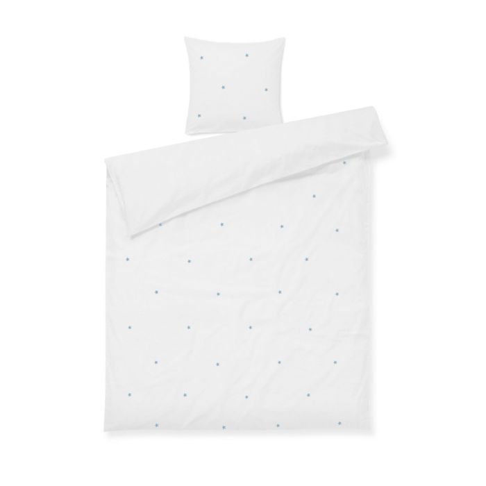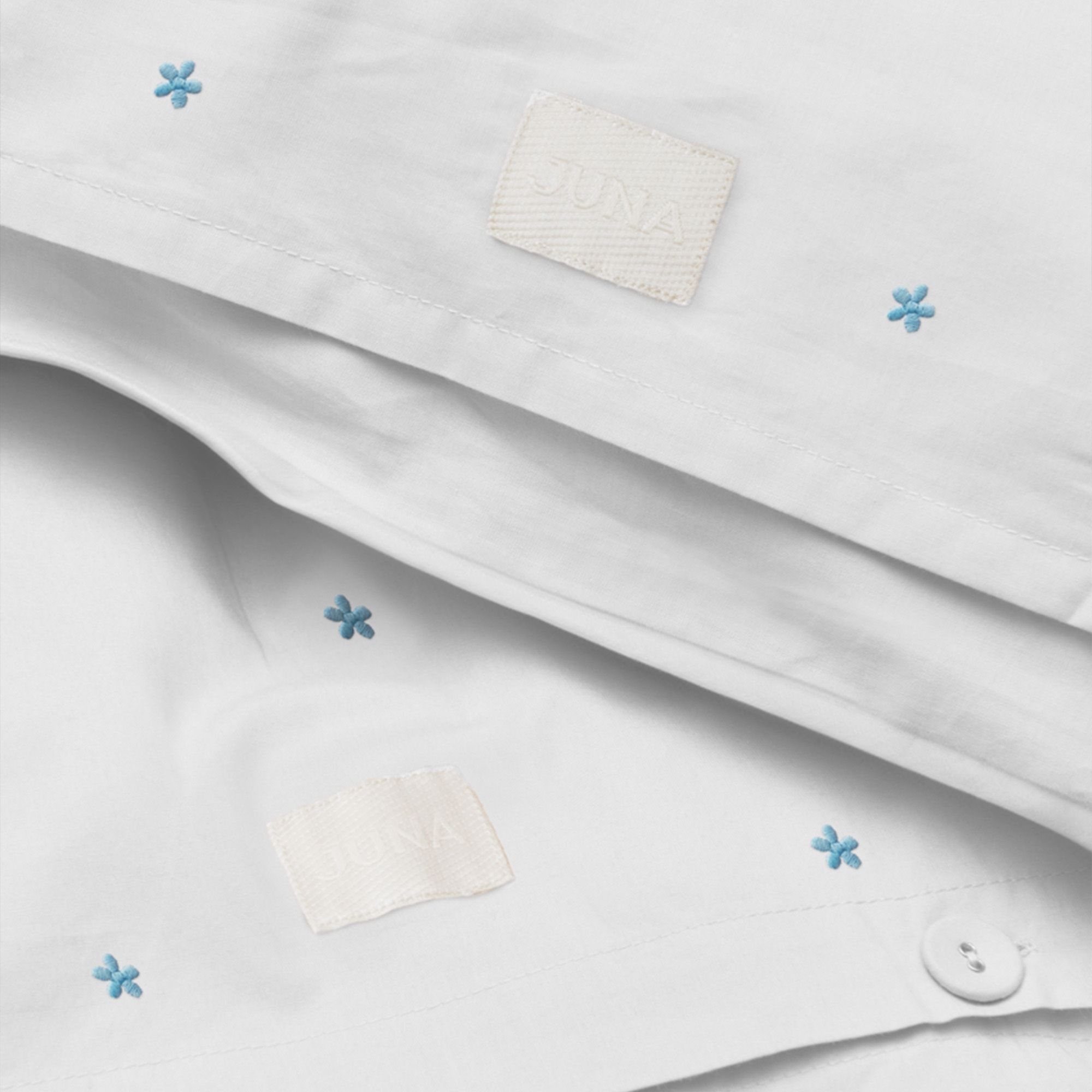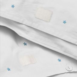JUNA sengetøj 140x220 cm - 100% økologisk bomuld - Daisy hvid med broderede blomster