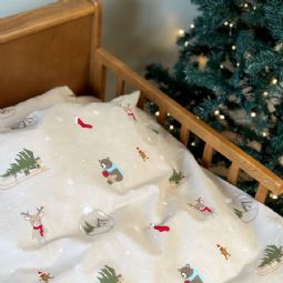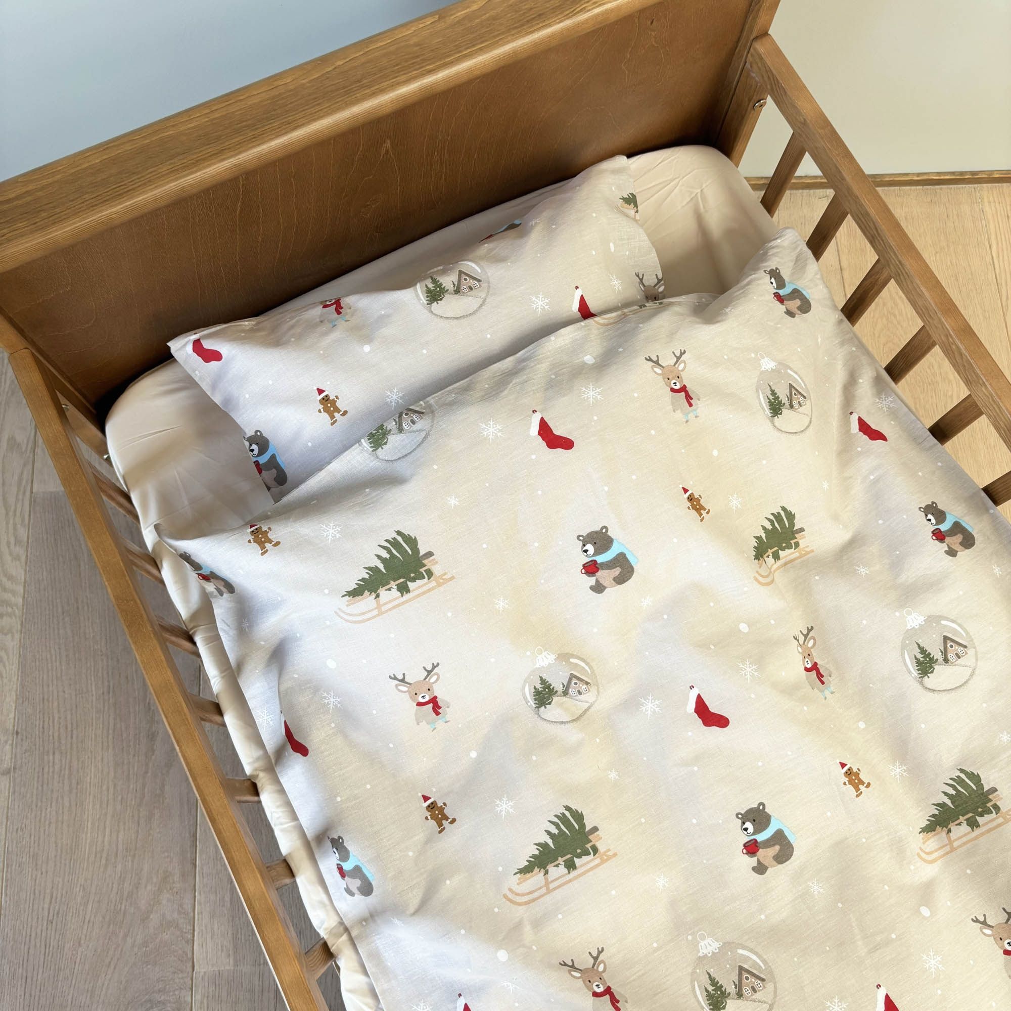 Blødt julesengetøj i 100% bomuld, med juleikoner. Produceret med lette og åndbare bomuldstråde som giver sengesættet en følelse af blødhed, der gør at dynen føles dejlig for dit barn at sove med. Balancen i naturlig egenskaber og komfort fra det bløde materiale, kombineret med det hyggelige juledesign, gør dette sæt til en sikker favorit hos dit barn.